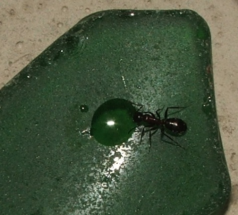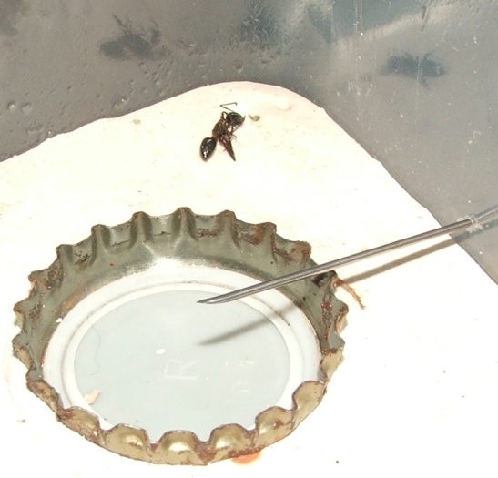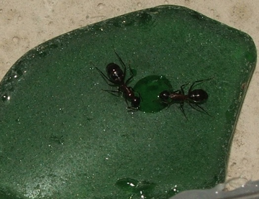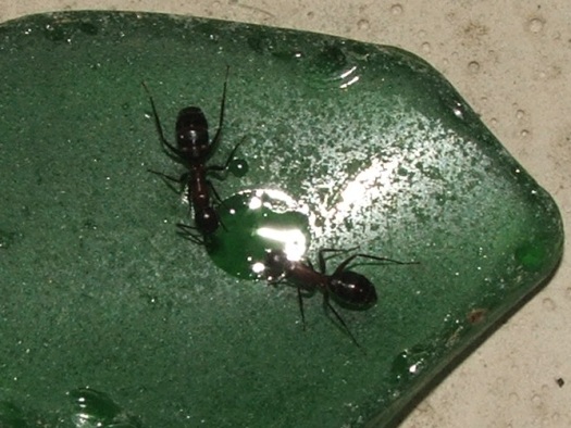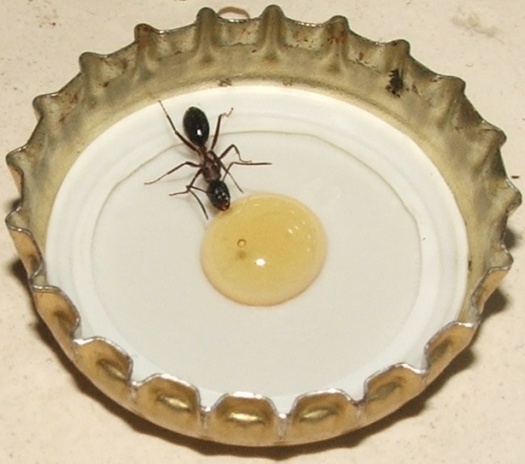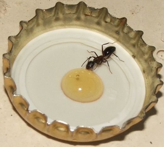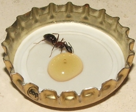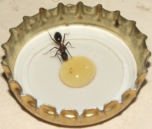 Ich habe ihnen noch etwa zwei Stecknadelkopf Honigwasser angeboten (Honig mögen sie nicht so, aber in einem Tropfen ersaufen tun diese Riesen ja wohl kaum).