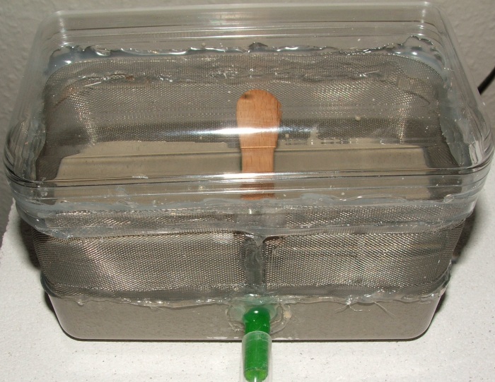 Deckel drauf und abbinden lassen - und ja, ist nicht hübsch, aber hoffentlich praktisch!