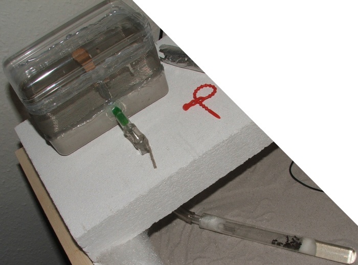 Hier sind sie an die Arena angeschlossen, der Brüter ist natürlich noch nicht angeschaltet, aber so ungefähr sollen sie gelagert werden...