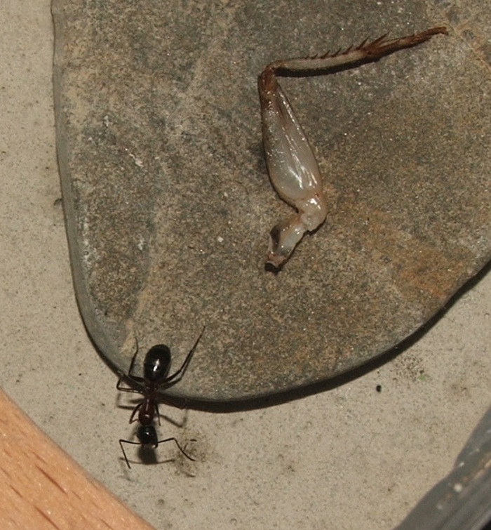 Als ich heute ein Heimchenstück gab, dauerte es eine ganze Weile, bis es entdeckt wurde, sie sind ja auch ziemlich vollgefressen, da riskiert man nicht ständig, rauszugehen,