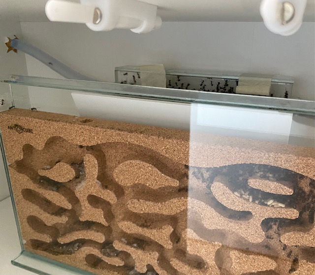 Ich habe eine Camponotus Nicobarensis Kolonie mit ca. 1000, die ja eine Diapause brauchen (verkürzte + weniger hohe Temperatur Winterruhe). Um die Diapause durchzuführen kann man ja die Tiere einfach bei etwas niedrigeren Temperaturen lagern = z.B im Gang. Mittlerweile ist aber meine Kolonie im Schrank verbaut (siehe im Bild). Wie soll ich die ganze Anlage in den Gang bekommen? Oder gibt es sonst Varianten wie ich die Diapause durchführen kann? Danke schon im voraus für die Antworten!