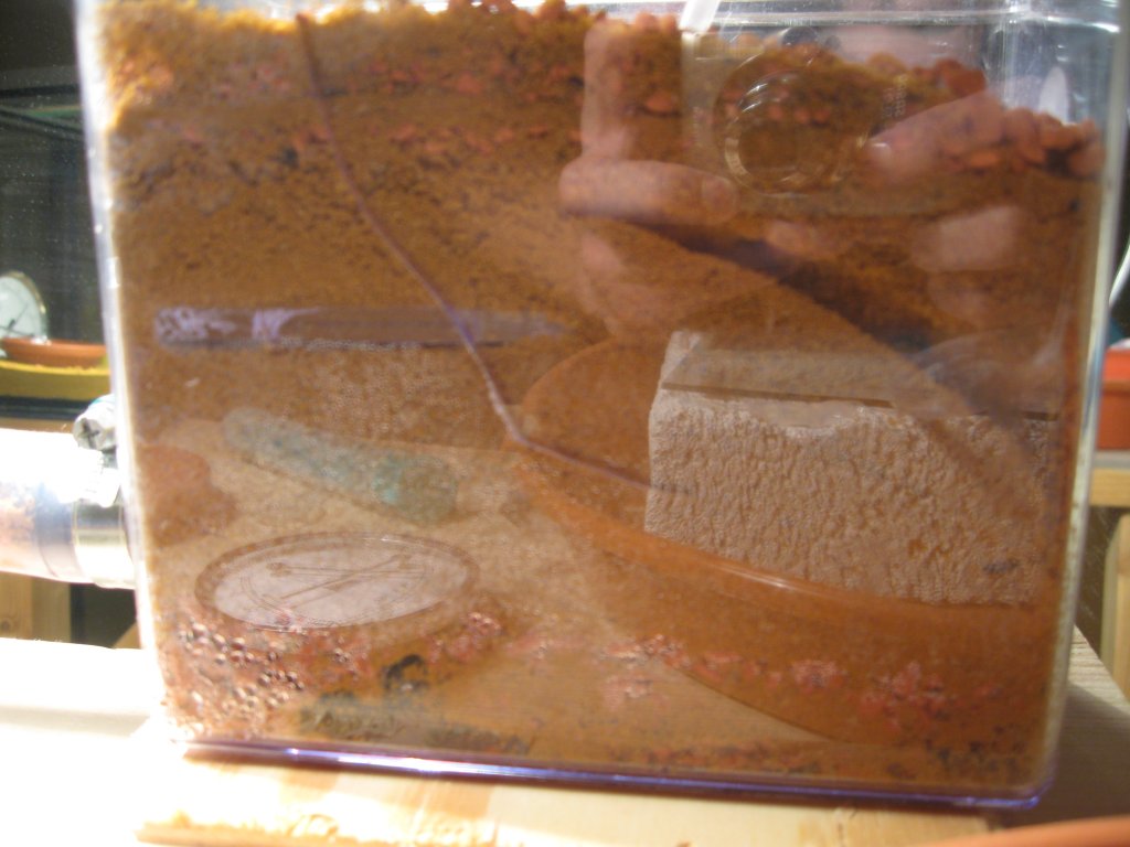 Ich werde sie noch ein wenig in der kleinen Plastikbox einschließlich Reagenzglas lassen und mich in der Zwischenzeit um die Einrichtung der Arena und Farm kümmern.