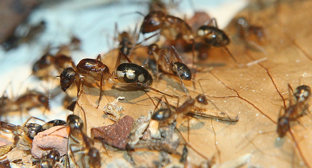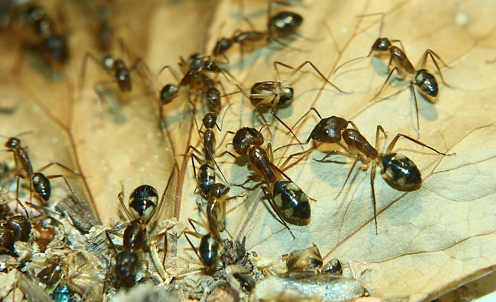 Als größeres Volk jagen und erlegen sie lebende Insekten.