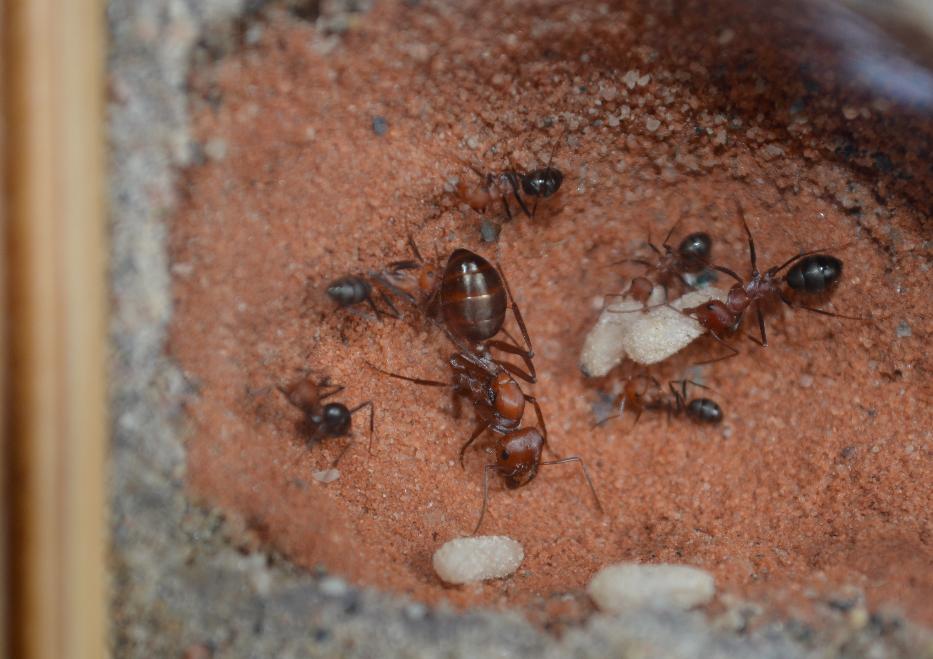I have to report noticing that the young colony has already taken refuge within the entrance of my signature nests (I think I may have over-watered it). There are 4-5 new eggs present which were not there before. This has happened in a matter of 8 hours, I am quite pleased with this.