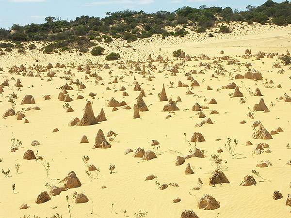 In Western Australia, etwa 250 km nördlich von Perth, gibt es eine weltberühmte Landschaft, die Pinnacles Desert, im Nambung Nationalpark.