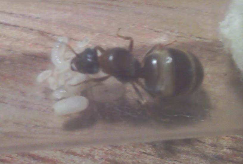 Nr. 5 Die erste, einer Lasius niger. Fleißige Brutpflege. Brut in allen Stadien. Normale Futteraufnahme. Pralle Gaster und n guter Gesamteindruck.
