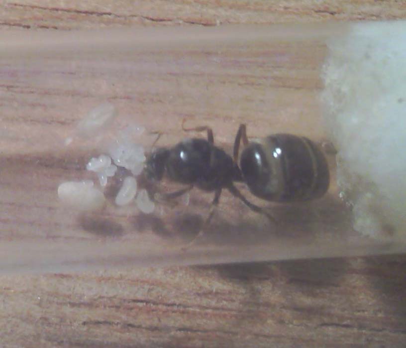 Natürlich sind auch sozialparasitär gründende Lasius-Königinnen in der Lage, Eier zu legen,