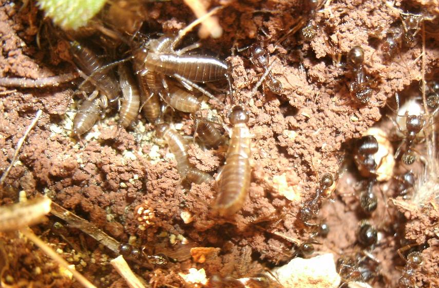 Diese winzlinge hielten sich tatsächlich überall auf. Ob in Nestern von Camponotus vagus oder unter Kronkorken, die Nester dieser hoch polygynen Ameisen passen überall rein. Die kleinen Formicinen haben wir auch einige Male beim Pflegen winzigster Blattläuse beobachtet.