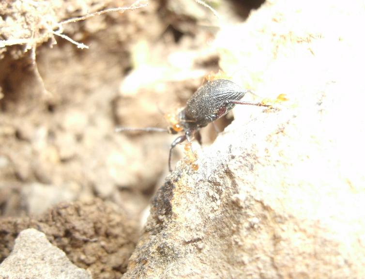 Hier ein kleiner Käfer, der nachdem ich einen Stein anhob nicht schnell genug von Pheidole fliehen konnte.