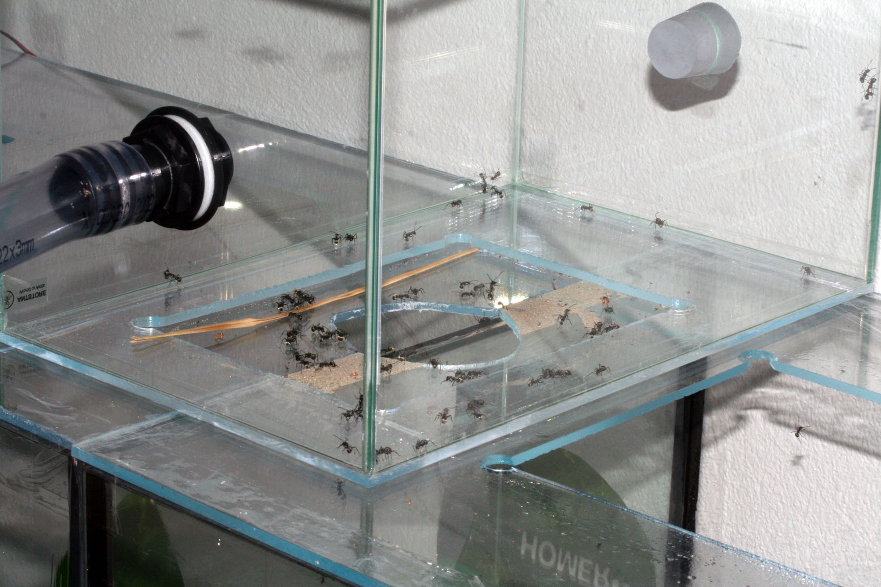 Heute mal wieder ein Update von meinen "Anfängerameisen". Eure Ameisen zeigen kein Rekrutierungsverhalten mehr, ihr möchtet wissen wie viele Ameisen eure Kolonie hat - ganz einfach, ihr braucht nur ausversehen eine Lücke in eurer Anlage haben und innerhalb von 5 Sekunden weiss es die ganze Kolonie