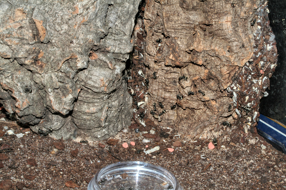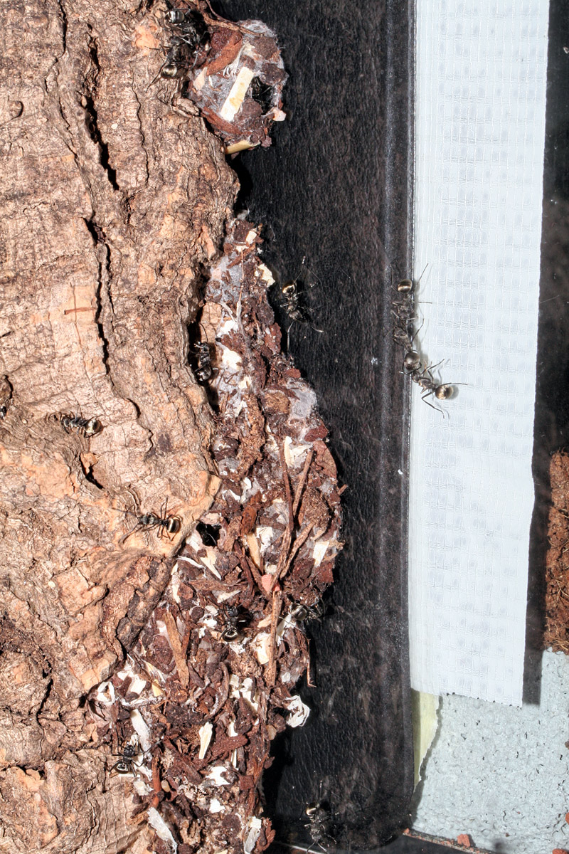 Es werden einfach von Woche zu Woche mehr Ameisen, mit Freude konnte ich gestern sehen, dass sie eine Neue Kammer am Nest anbauten. Weniger Freude macht die Reinigung, wer viel frisst hat viel Müll, blöd nur dass es keinen freien Zentimeter mehr gibt wo ich mal ungestört saugen könnte ohne direkt eine Ameise mit abzusaugen.