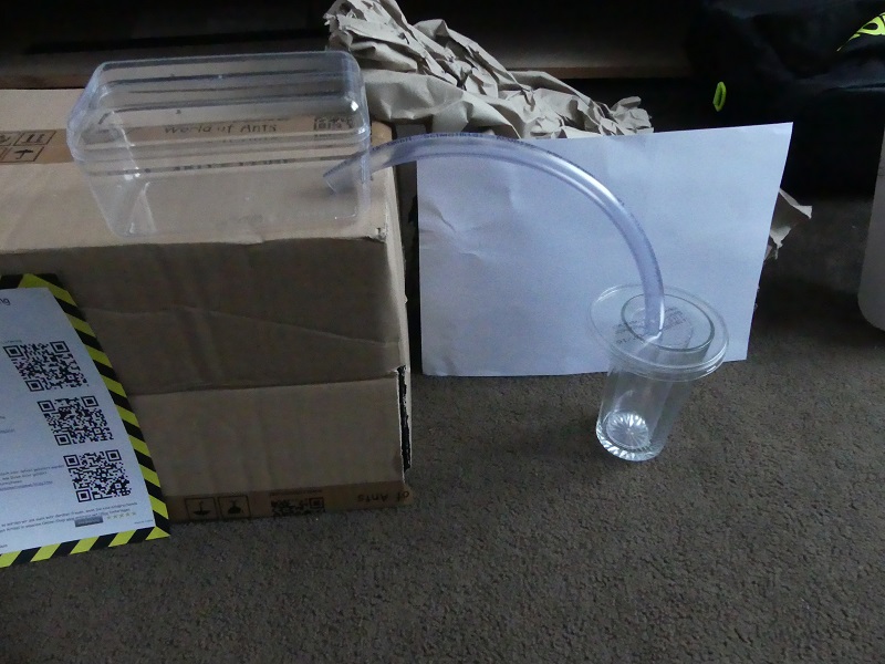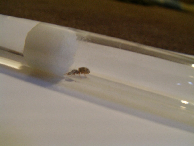 Als ich die Lasius flavius Königin auf den Boden habe rumlaufen sehen, hatte ich keine Zeit ein neues Reagenzglas vorzubereiten.