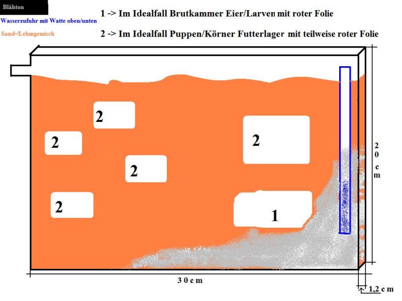 Die Einzeichnungen der Kammern sehe ich jetzt einfach mal als Idealfall im Bezug auf die Aufteilung Feucht: Brutkammer/Eier/Larven