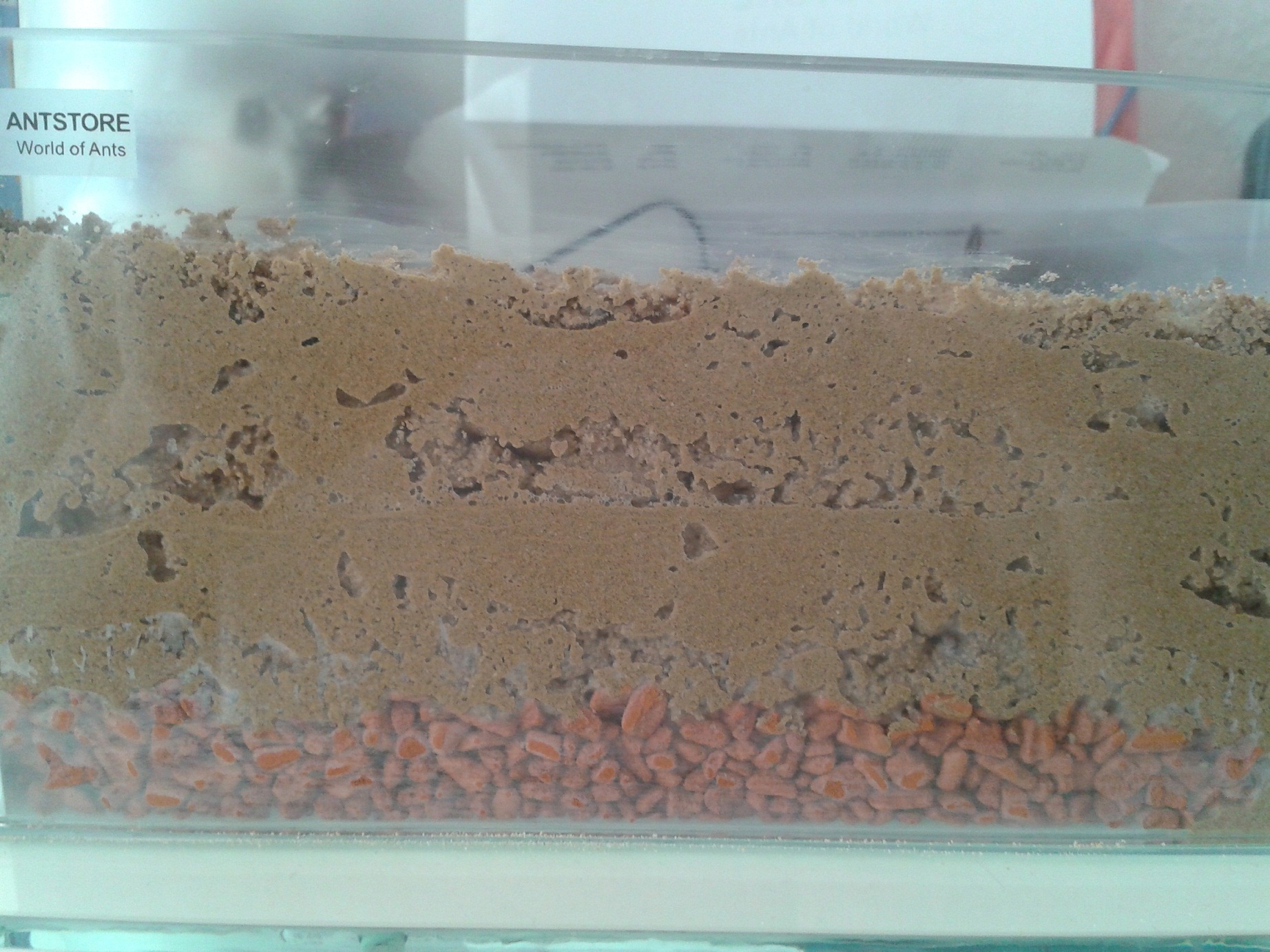 Ich habe das Forum bereits mit der Suchfunktion durchstöbert, aber leider keine hilfreiche Antwort gefunden. Außerdem habe ich mir das Einsteigerheft, sowie die Kurzanleitungen von Antstore angeschaut. Damit ich nichts falsch mache hätte ich trotzdem ein paar kurze Fragen. Ich hoffe, jemand kann mir diese beantworten. Heute ist mein Starter Set angekommen. Ich habe meine Farm mit Granulat, Sand/Lehmmischung und einem Drainagerohr befüllt. Im Anhang habe ich ein Bild angefügt. Ist dies zu nass oder in Ordnung. Außerdem habe ich die Arena mit Sand gefüllt, diesen lasse ich im Moment aushärten. Da ich die Ameisen auch gleich mitbestellt habe, würde ich nun gerne wissen, ob ich diese mit dem Schlauch direkt an die Farm anschließen sollte (heute noch), oder die Ameisen lieber noch zwei Tage im Transportbehältnis belasse, bis die Arena ausgetrocknet ist und diese dann dort einsetze und die Arena mit der Farm per Schlauch verbinde. Im Moment habe ich die Ameisen im Transportbehältnis belassen und auch die Umwicklung mit Zeitungspapier noch nicht gelöst. Eine weitere Frage betrifft die Fütterung. Mir wurde ja ein wenig Honigwasser mitgeschickt. Ab wann muss/sollte ich die Ameisen füttern. Sollte man direkt nach Anschluss der Transportbox etwas anbieten?