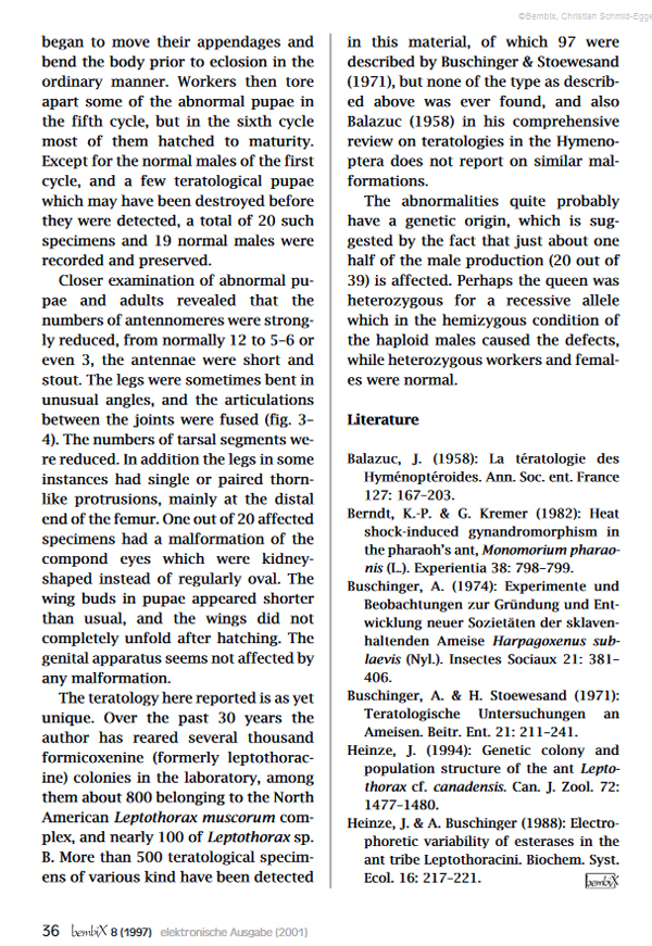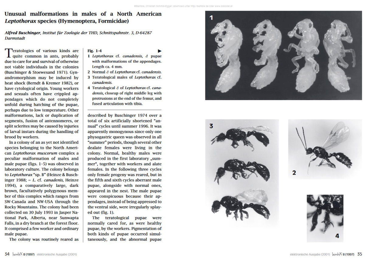 Bild 1 zeigt „Kältekrüppel“, aus: Kutter, H. (1986): Über Anomalien einheimischer Formiciden. - Mitteilungen der Schweizerischen Entomologischen Gesellschaft 59, 229-238.