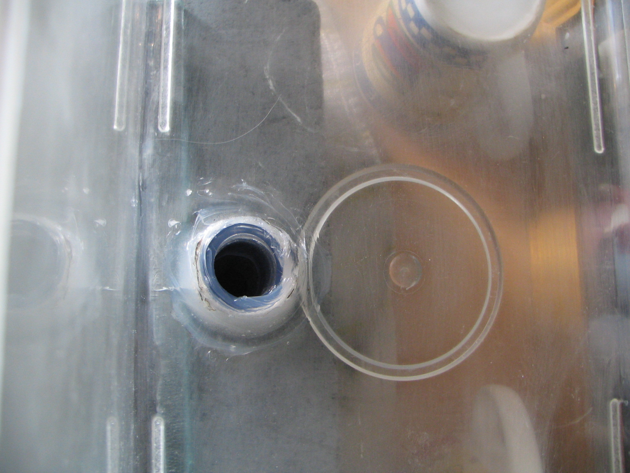Exit into the Foraging area.. sealed with aquatic sealant.