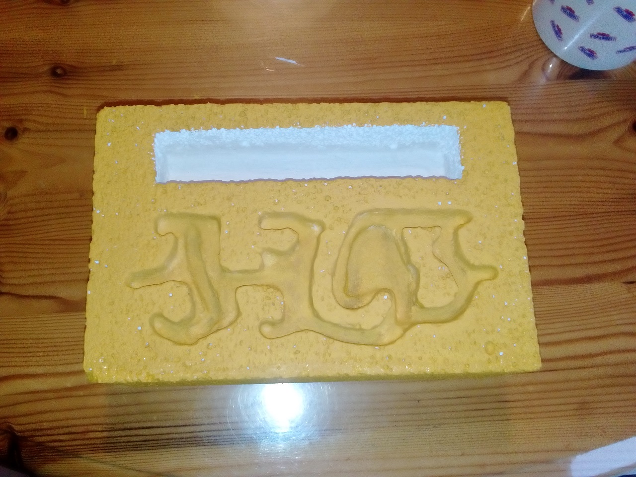Danach habe ich den Innenbereich mit Gips ausgegossen und mit dem Pinsel etwas Struktur reingebracht.