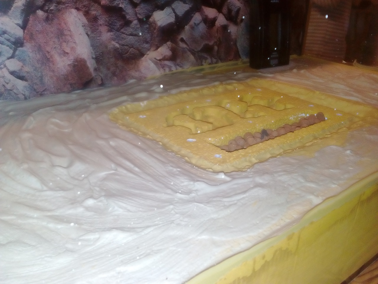 Die Gänge habe ich 0,8 mm tief und einige Bereiche auf 1,2 cm eingelassen um hier auch ausreichend Platz zu schaffen denn in der Vergangenheit ist mir mehrfach aufgefallen das ich das alte Nest zu tief ausgearbeitet habe und auch anfangs zu viel platz bereitgestellt habe was dazu geführt hat das Müll und Leichenteile im Nest belassen wurde. Ich hoffe das ich hier jetzt Abhilfe geschaffen habe. Des weiteren habe ich mich für 2 Öffnungen zum Außenbereich entschieden mit dem Hintergrund hier später falls es zu eng werden sollte, an einer Öffnung eine Nesterweiterung anschließen zu können.