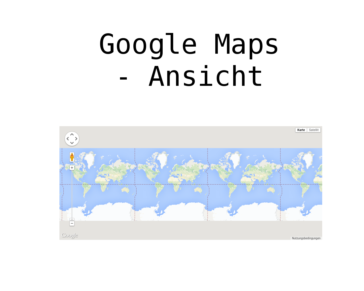 Wenn man aus einer Kartenansicht (es scheint unabhängig zu sein, welchen Benutzer man ortet) weiter hinauszoomt und damit die Weltkarten mehrfach angezeigt bekommt, fällt auf, das als Hintergrundbild die normale Zoomgröße zu sehen ist.