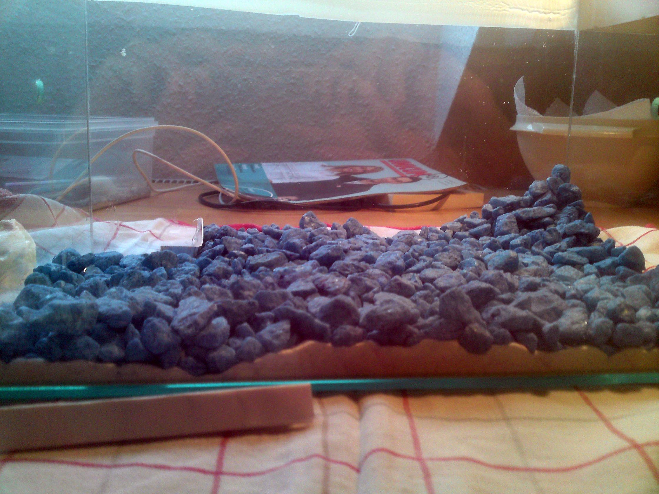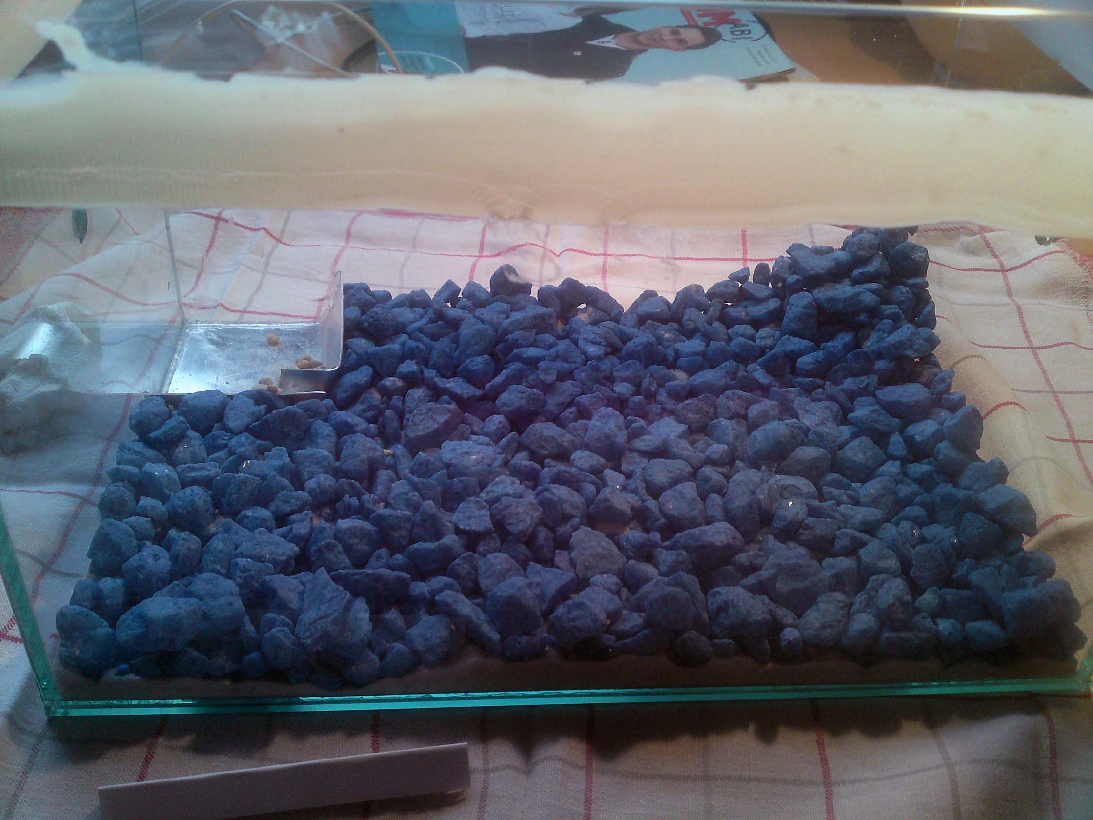 Im Billigladen habe ich blaue Kunststoffsteine gekauft ( diese natürlich gewaschen!)