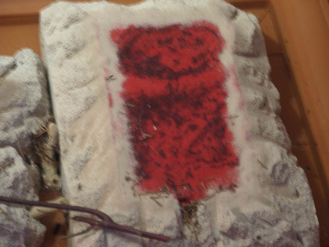 Das über 100cm lange Inselnest der großen Kolonie. Links ein Inselteil mit einer Pflanze und ziemlich offenem Gelände, in der Mitte ein großer Jagdteil mit Gehölz und Steinchen, ganz rechts schließlich ihr Nest, dass durch das Wasser im Graben und die Saugfähigkeit des Ytong immer feucht gehalten wird.
