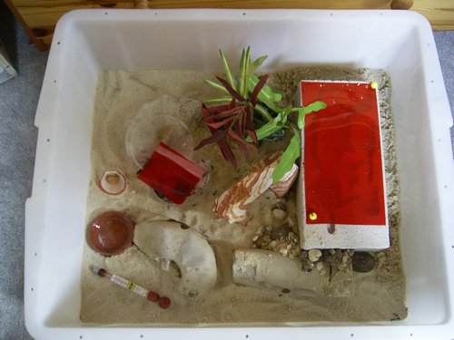Hier in diesem 60x40cm gefäß halte ich zur Zeit meine ganz neue mit 100 Arbeiterinnen große Camponotus cruentatus Kolonie. Ihnen gehts zur Zeit sehr gut. Ich hab mich jetzt doch nicht für den wassergraben entschieden sondern ich nehme jetzt Talkum als Ausbruchssicherung der Tiere.