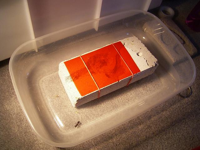 Auf dem Bild sucht die Königin weitere Brut außerhalb des Nestes, obwohl sie schon alles ins Nest getragen hat! Bitte nicht verdutzt schauen (das ist nur das vorübergehende Nest) - nächstes Wochenende richte ich ihnen ein schönes großes Formikarium ein! Natürlich mit Rotlichtlampe, Frank!