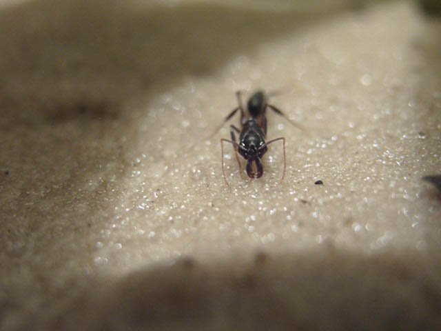 Hier sieht man die Schnappkiefern. Gut sichtbar sind die hakenähnlichen Enden der Kiefer, die sich beim Zuschnappen in die Haut der Beute bohren.