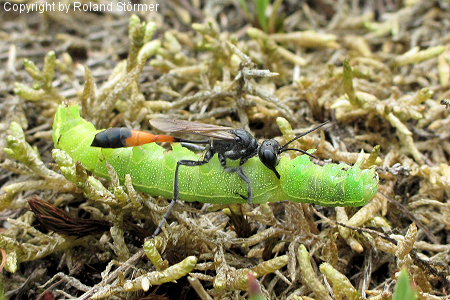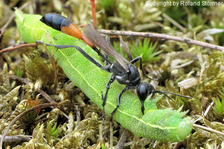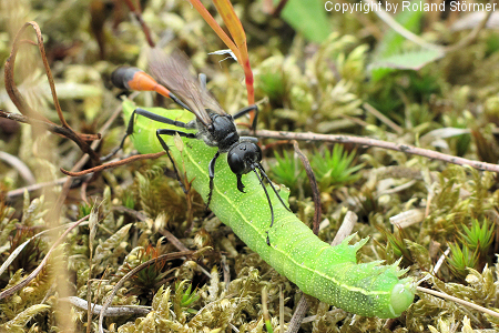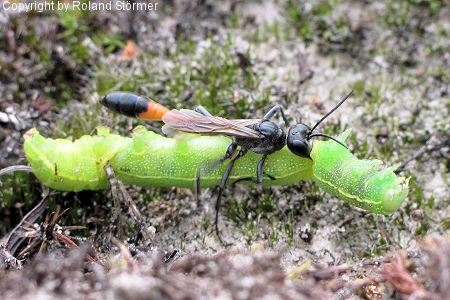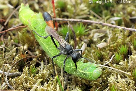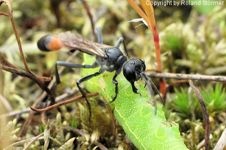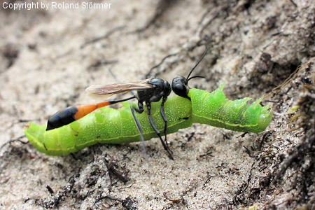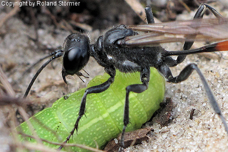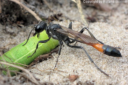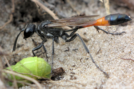 Die Gemeine Sandwespen (Ammophila sabulosa) erreichen eine Körperlänge von 16 bis 24 Millimetern (Weibchen) bzw. 14 bis 19 Millimetern (Männchen) und sind damit die größten Sandwespen in Mitteleuropa.