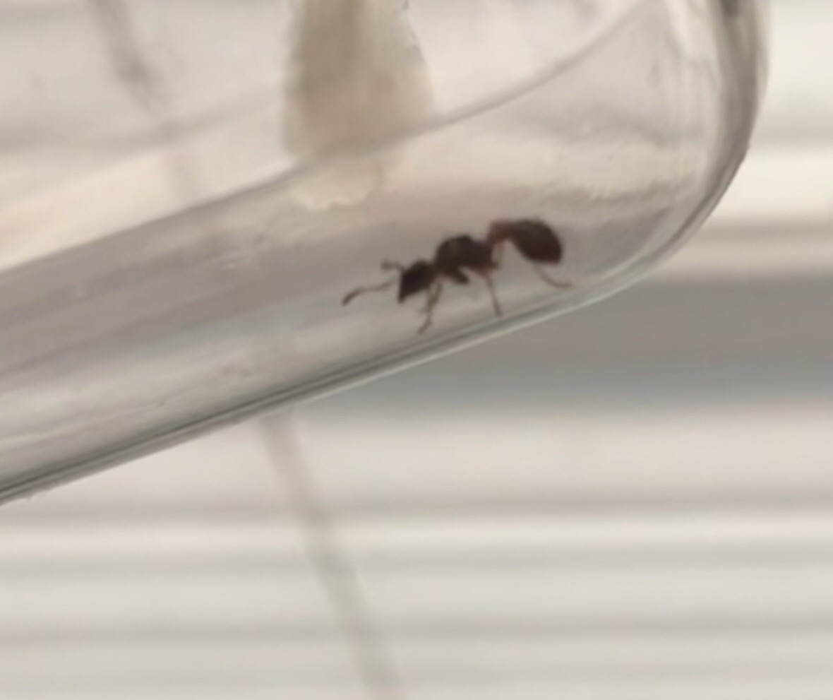 Myrmica rubra ist semi-claustral, das bedeutet sie braucht Futter (Zuckerwasser und kleine Insekten, z.B. Fruchtfliegen) um zu gründen. Die Reserven der Königin selbst reichen nicht.