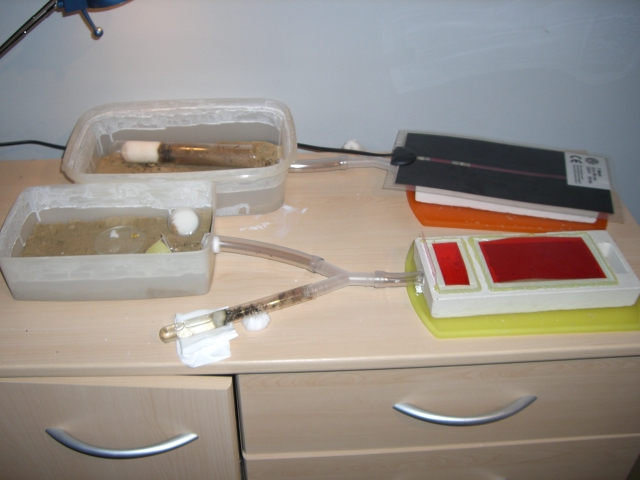 Die Nester sind aus Gips und mit Sand-Lehm gefühlt, um die Feuchtigkeit gut zu regulieren.
