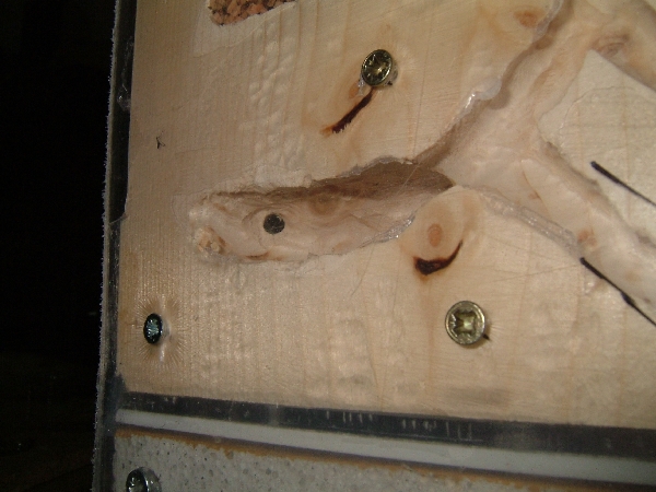 Ansonsten besitzt das Nest wieder zwei Ausgänge, wobei ich auch hier wieder die Zugänge etwas größer gestaltet habe, als erforderlich, dafür aber so angelegt, daß die Ameisen sie selber mit Substrat verkleinern können (ok im Holzteil nicht ganz so optimal ausgefallen). Dies klappt ja bei den RG-Nestern auch, sowie bisher bei meiner Lasius cf. niger-Mini-Kolonie, deren Gyne ich in einem Ytong hab gründen lassen (denen scheint es auch ordentlich zu taugen - die Kokons werden nicht weniger, dafür werden die Ameisen mehr - kein Scherz - dies trat ab 12 Frauen ein und hält sich bisher beständig; im Moment sind es 18).
