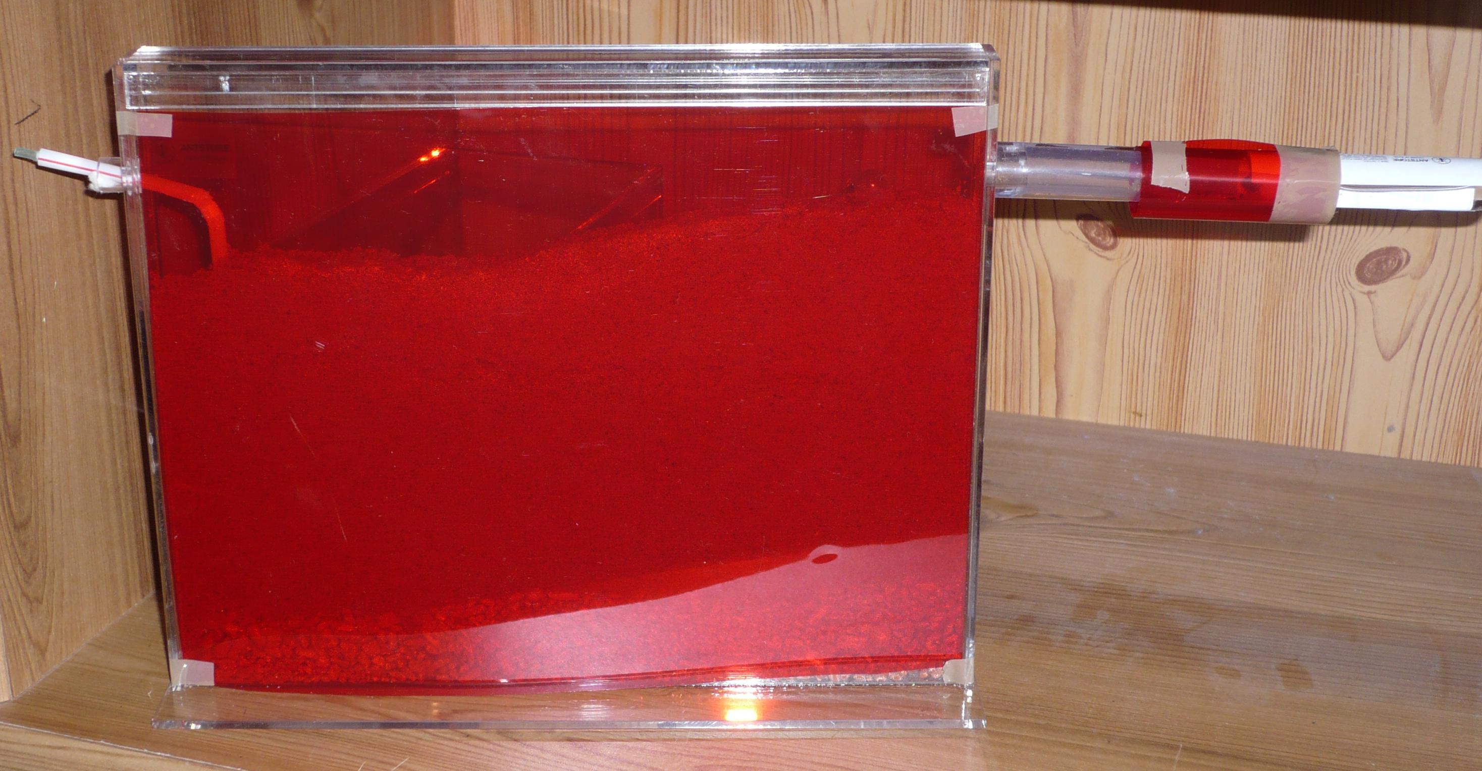 Über Nacht haben die Arbeiter damit begonnen das hintere Drittel des Reagenzglases mit Sand zu verbauen.