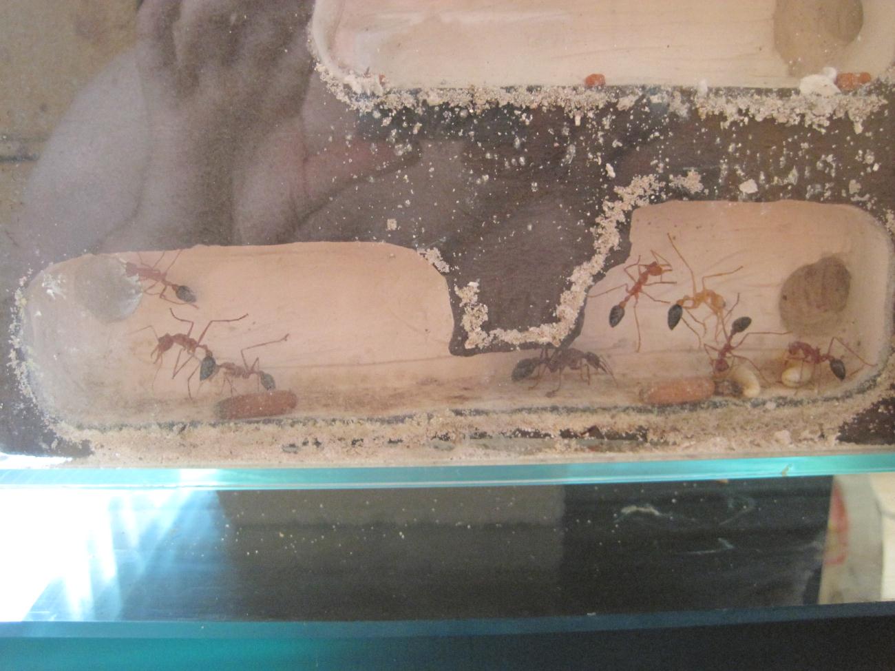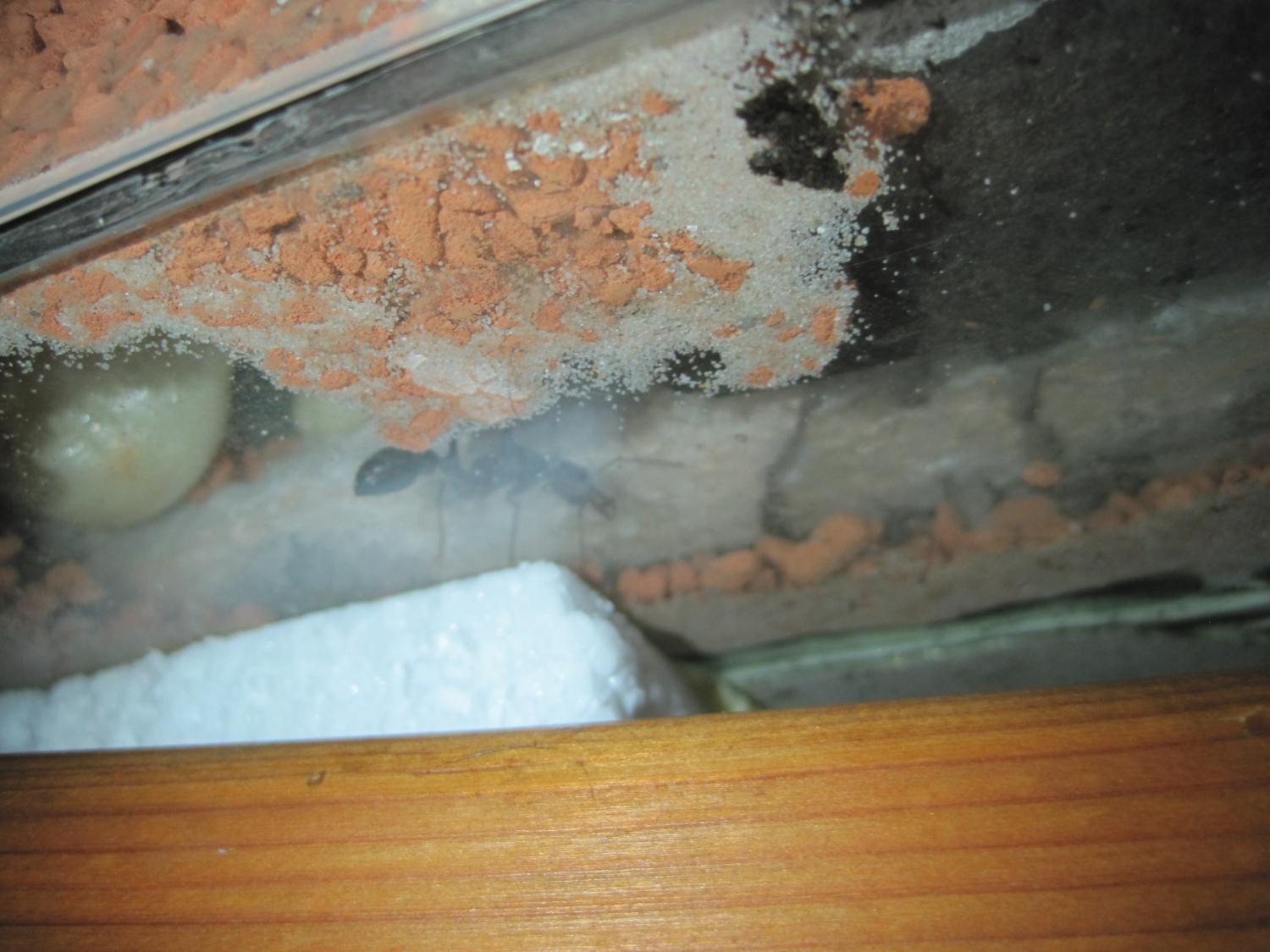 In dieser Zeit, haben die Ameisen alles umgegraben und sich unter das eigentliche Nest vergraben. Die Seramis welche zum befeuchten waren wurden als Baumatrial verwendet.