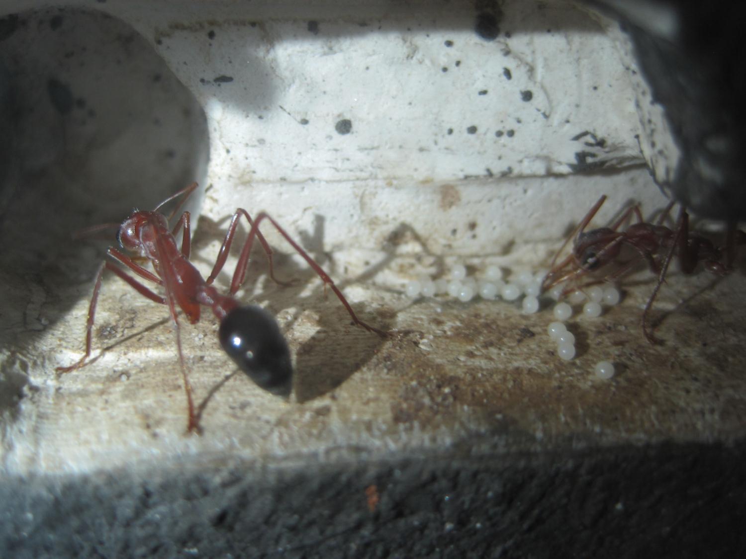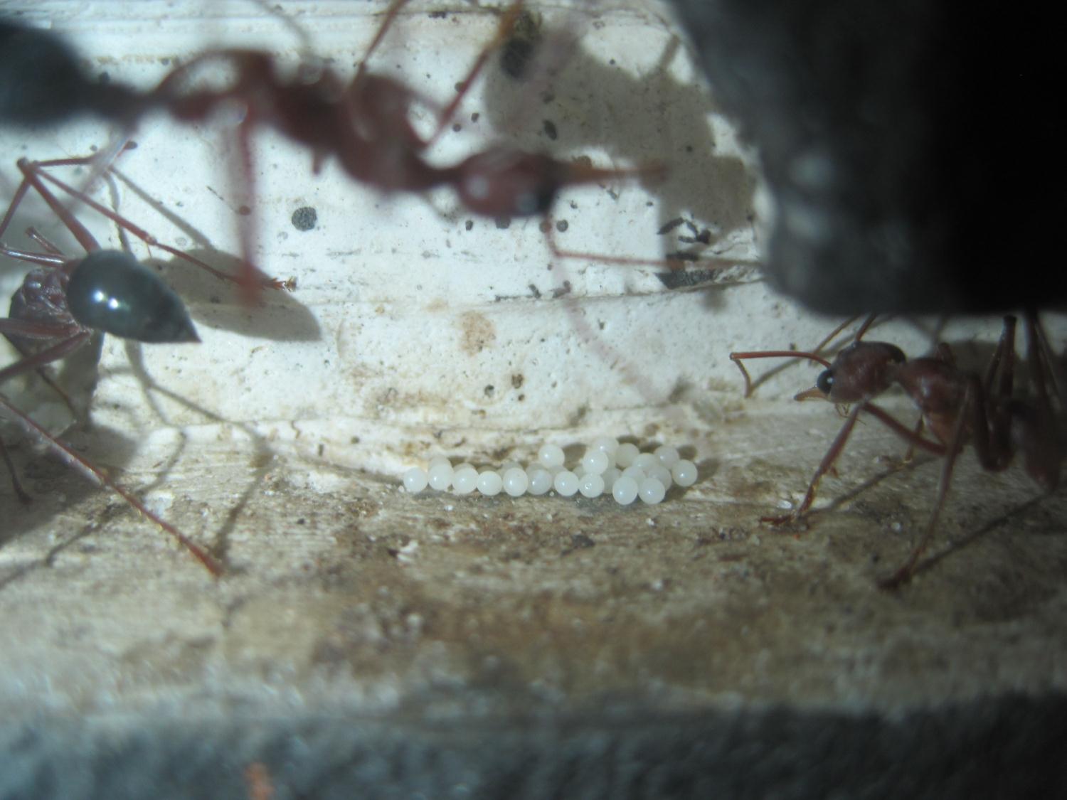 Für weiteren Nachschub wird angeblich auch gesorgt. Ab und zu seh ich an die 5 Eier rumliegen die jedoch immer wider an andern Orten lagern und ich nicht genau sehen kann. Bei Myrmecia kann man schön sehen, wie die Eier immer Schubweise gelegt werden und zwar dann, wenn der andere Schub bald fertige Ameisen sind.