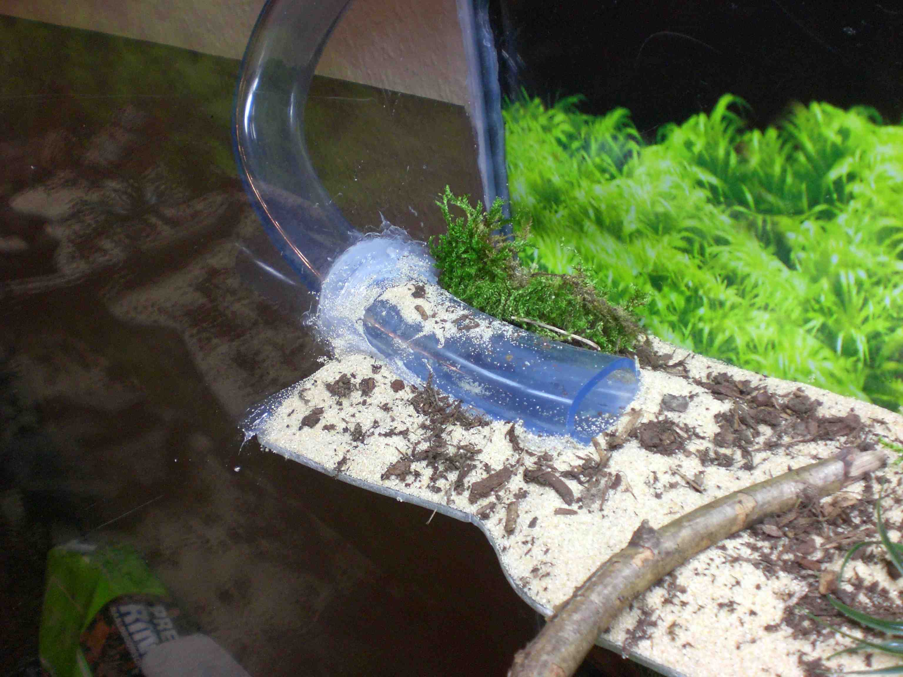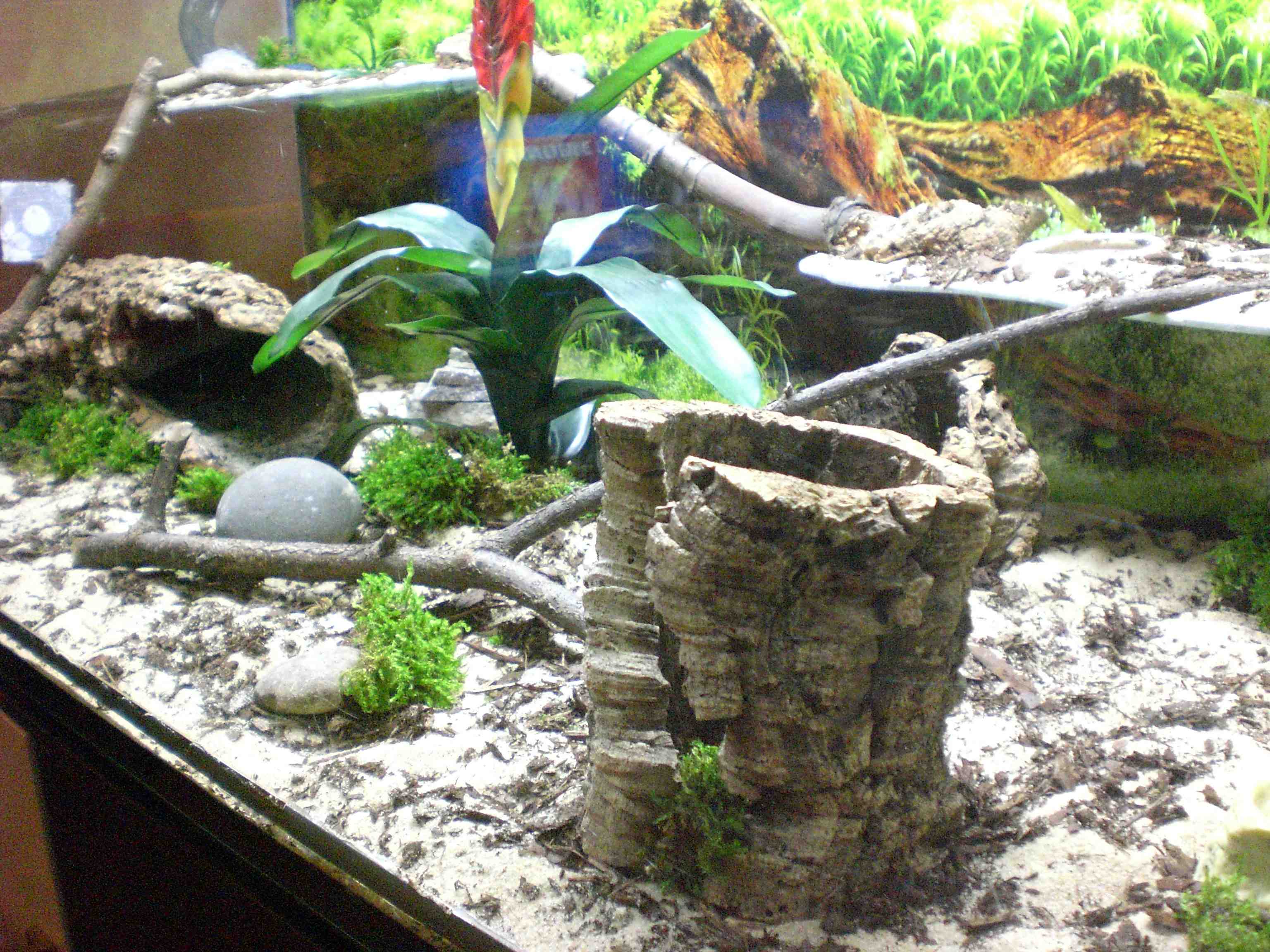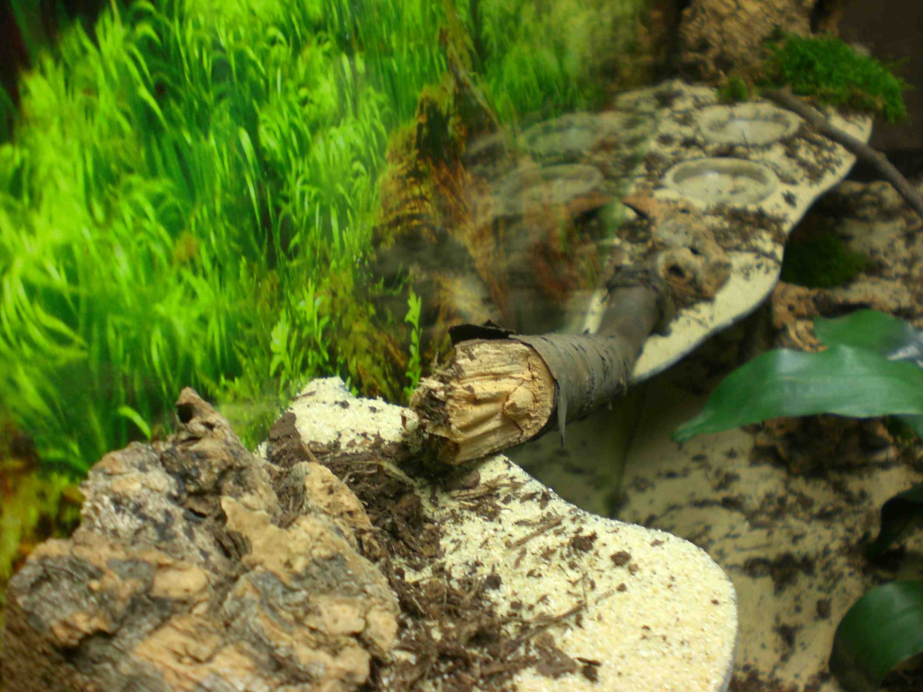 Als Pflanzen verwende ich ein paar Kunstplfanzen von Antstore sowie viel selbstgepflücktes Moos. Dann noch Geäst, Steine und Korkrinden(alles natürlich vorher in den Backofen gepackt)