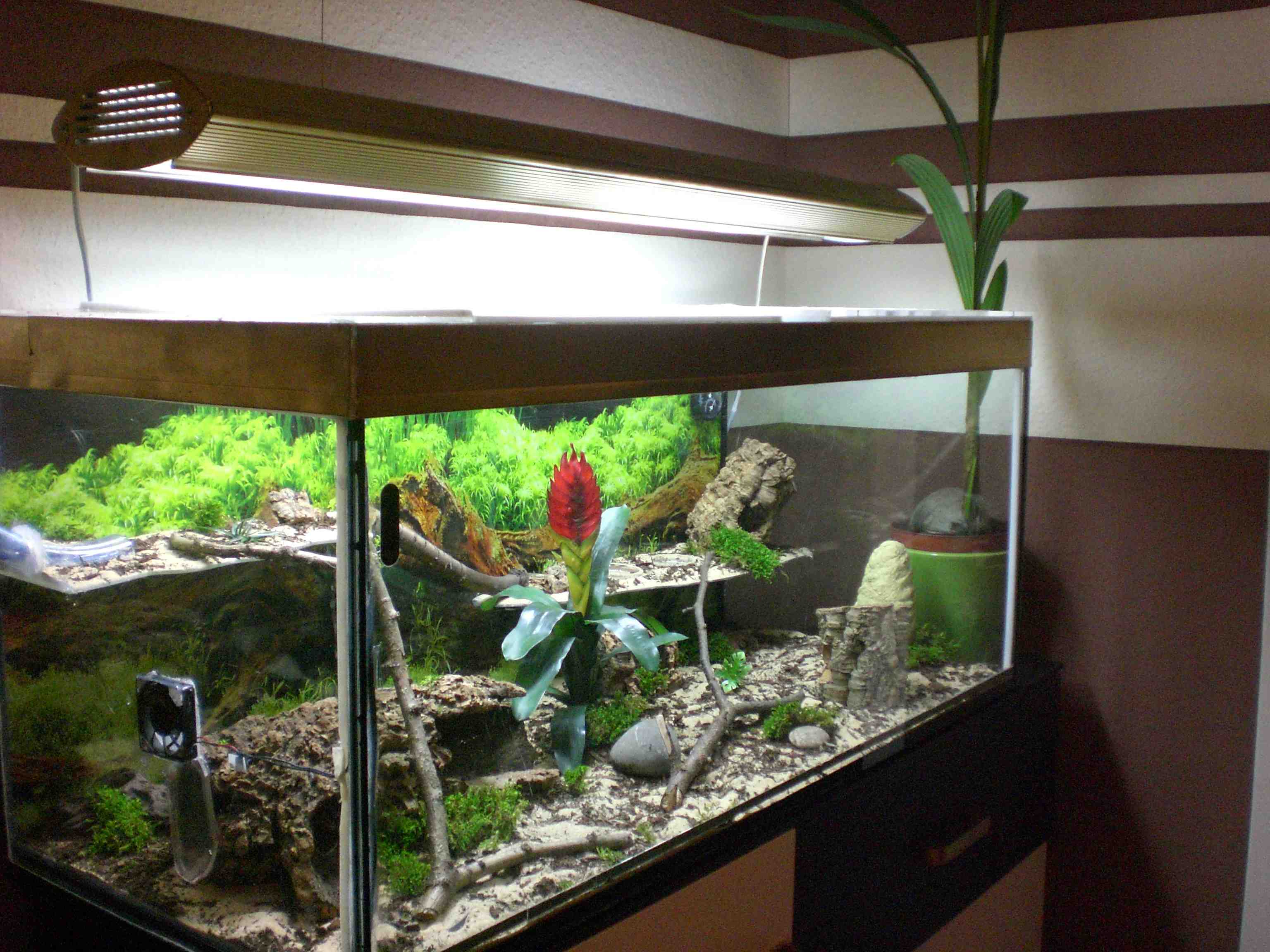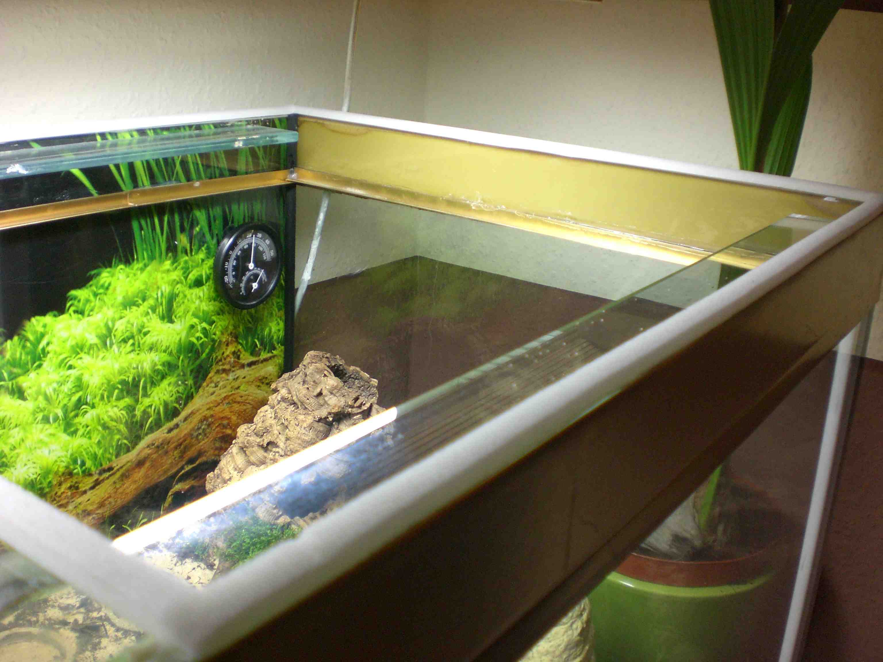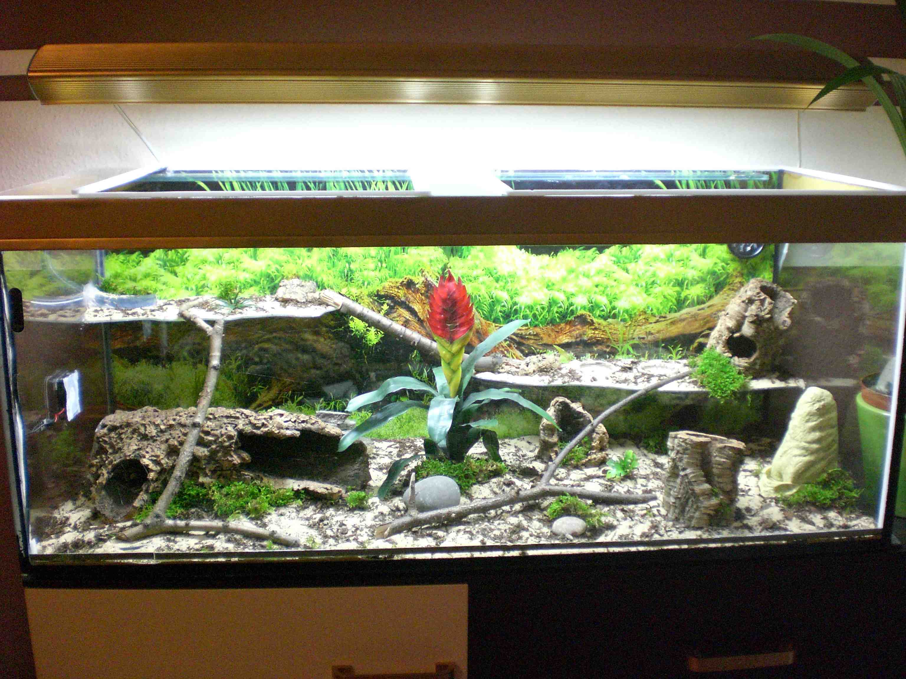 Das Becken misst 120x50x50cm und ist aus Glas. War ein Schnäppchen ausm Netz, welches vorher für Fische genutzt wurde. Habe alles mit Essigessenz und Scheibenkratzer saubergemacht.