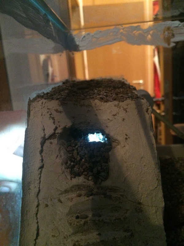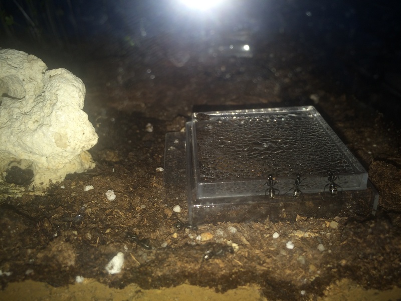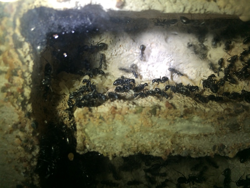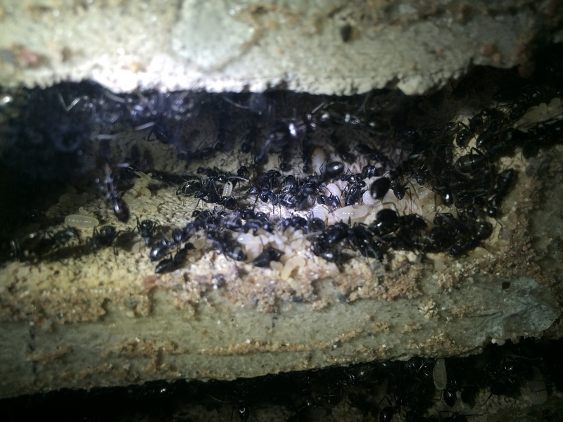 Genau die Königin mit 7 Arbeiterrinnen. Sie musste da raus, das war mir klar, also schnell den Strahler her und voll auf das Nest ausgerichtet.