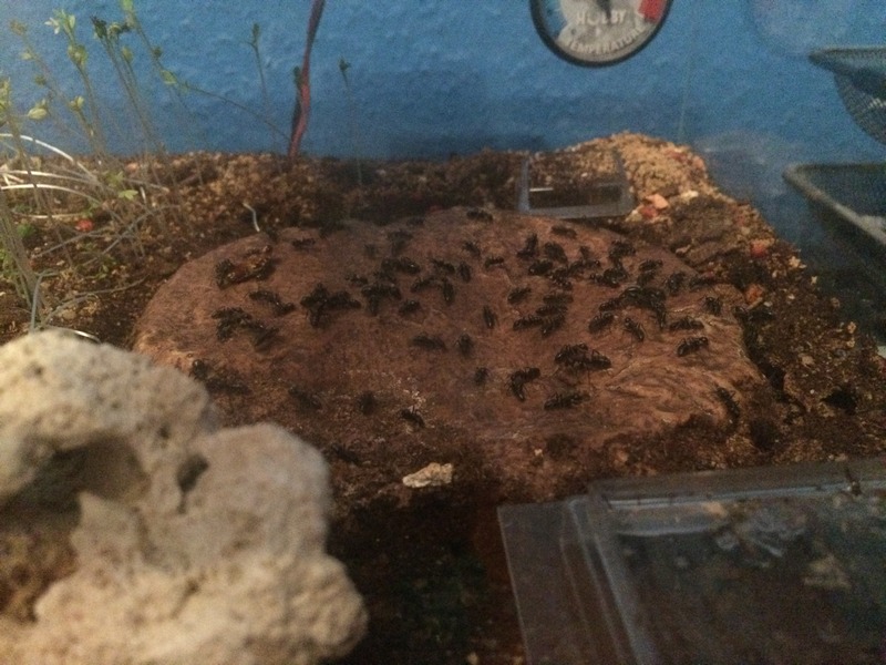Sie sind putzmunter, fressen so ziehmlich alles was ich ihnen gebe. Ob Heuschrecke, Schabe, Spinne, Ohrenkneifer oder auch Haxe wie ihr wisst, sie fressen so gut wie alles solange es frisch ist und nicht wie die Haxe nach nem Tag ....
