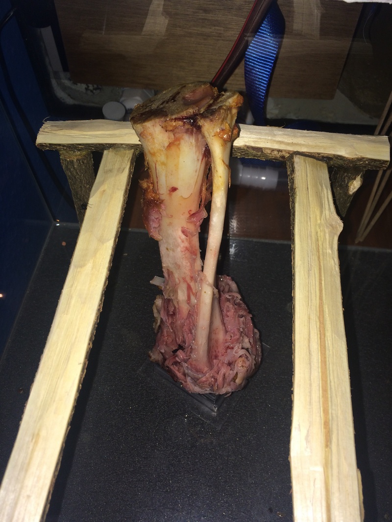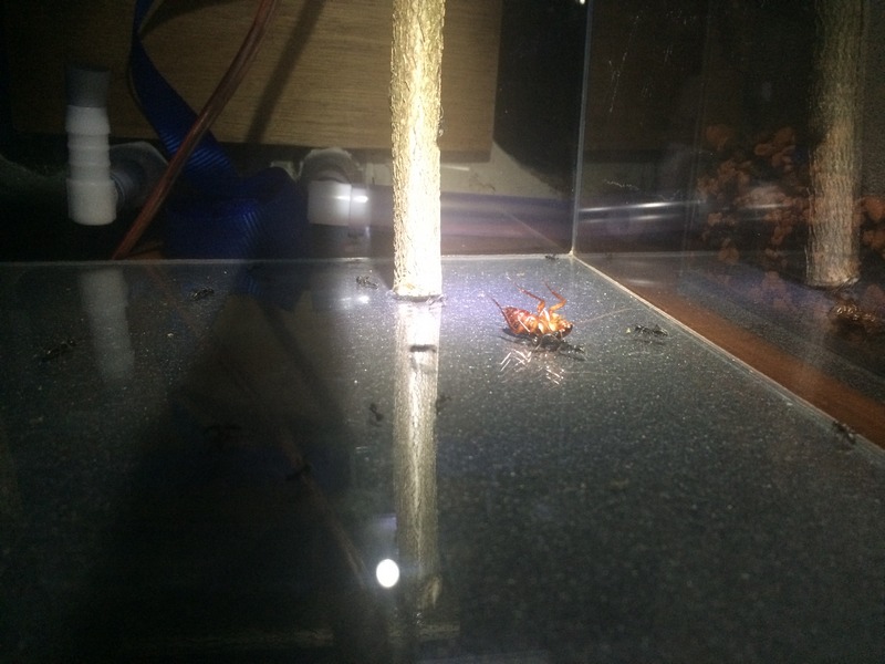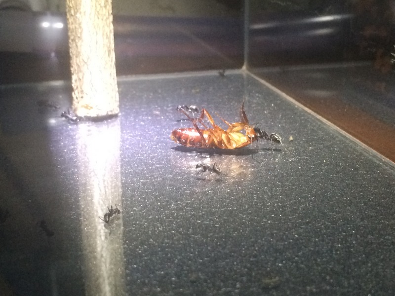Bei der Fütterung laufen hin und wieder ein paar Schaben durch den Verbindungsschlauch und fallen dann unten auf den Boden.