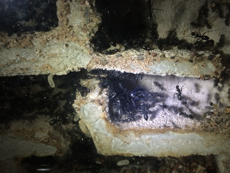 Dann als kaum noch eine Ameise beim Alten Nest war, habe ich es dort weggenommen und ins Nest reingesehen.
