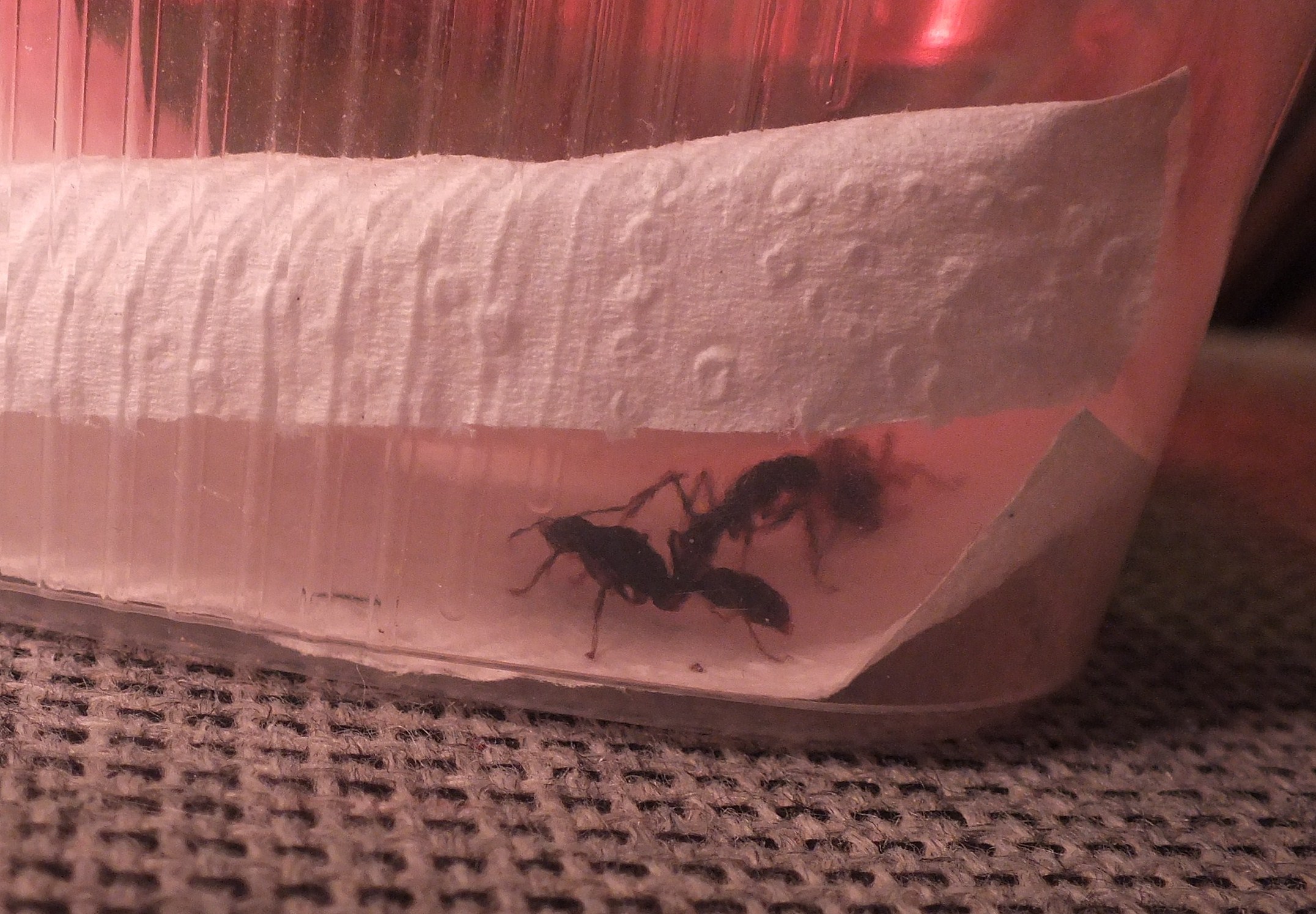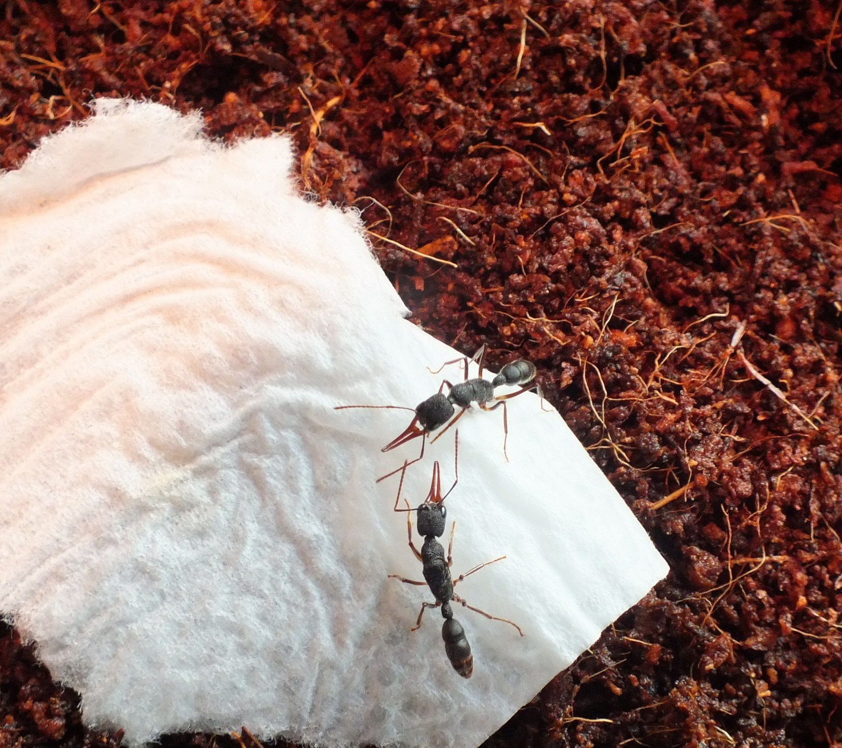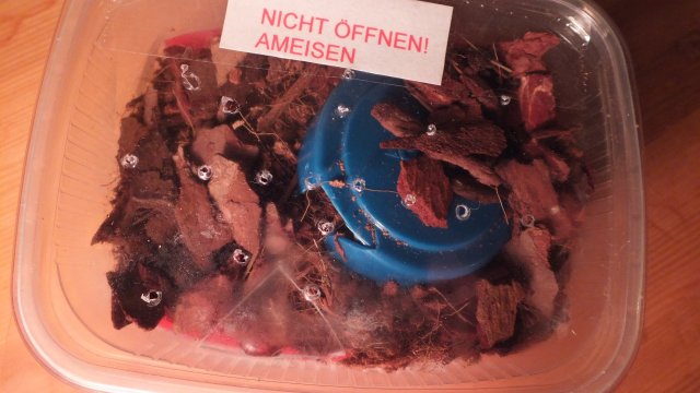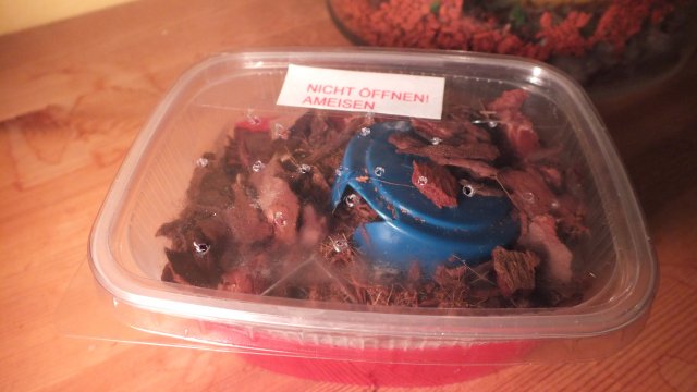 Die Ameisen kennen diese Art von Nest schon von ihrem vorherigen Halter. Ich habe ihnen bisher 1 mini Heimchen angeboten und ein großes.