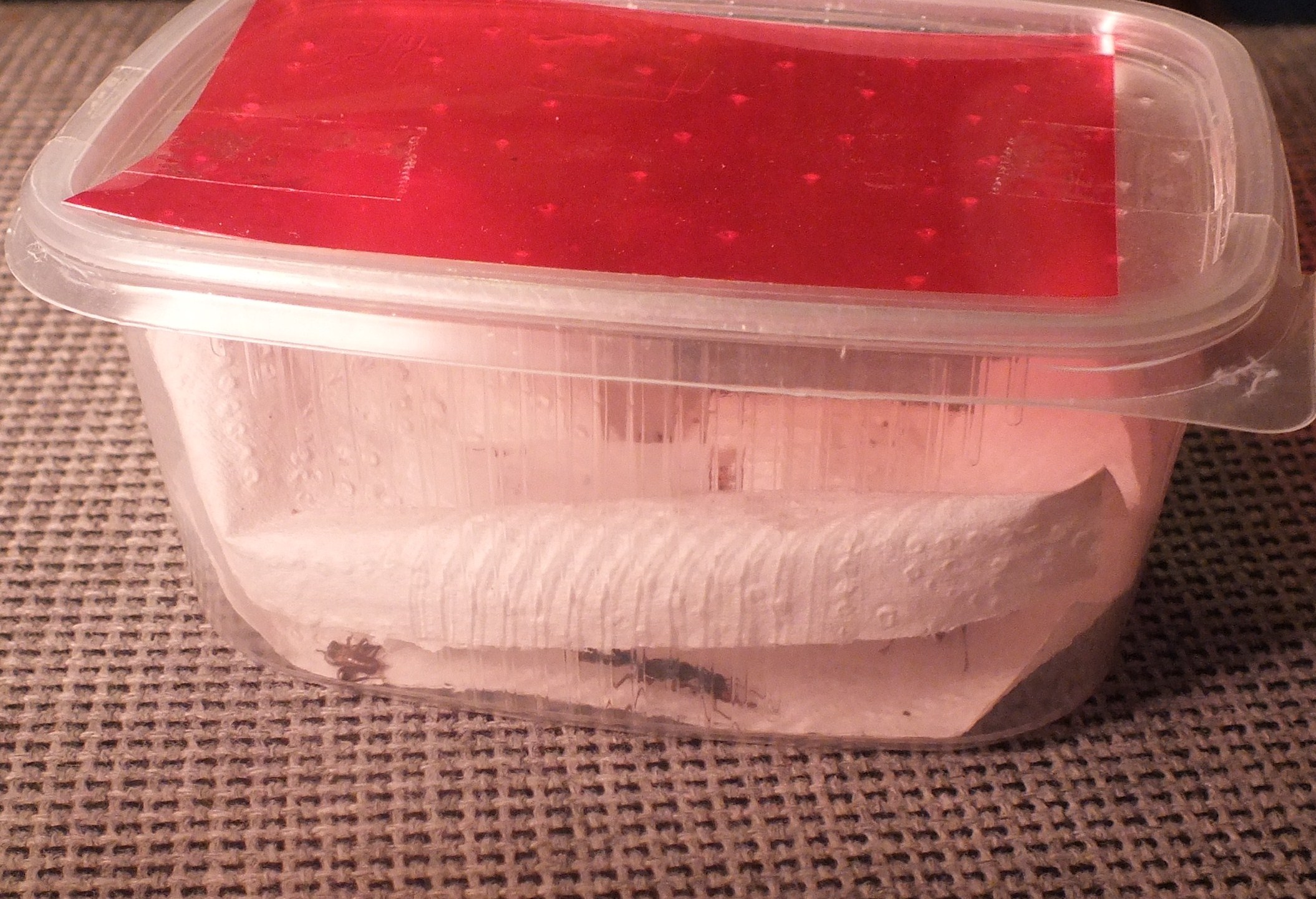 Daraufhin habe ich sie in eine kleine Plastikschale gesetzt, das ich mit Toilettenpapier versehen habe