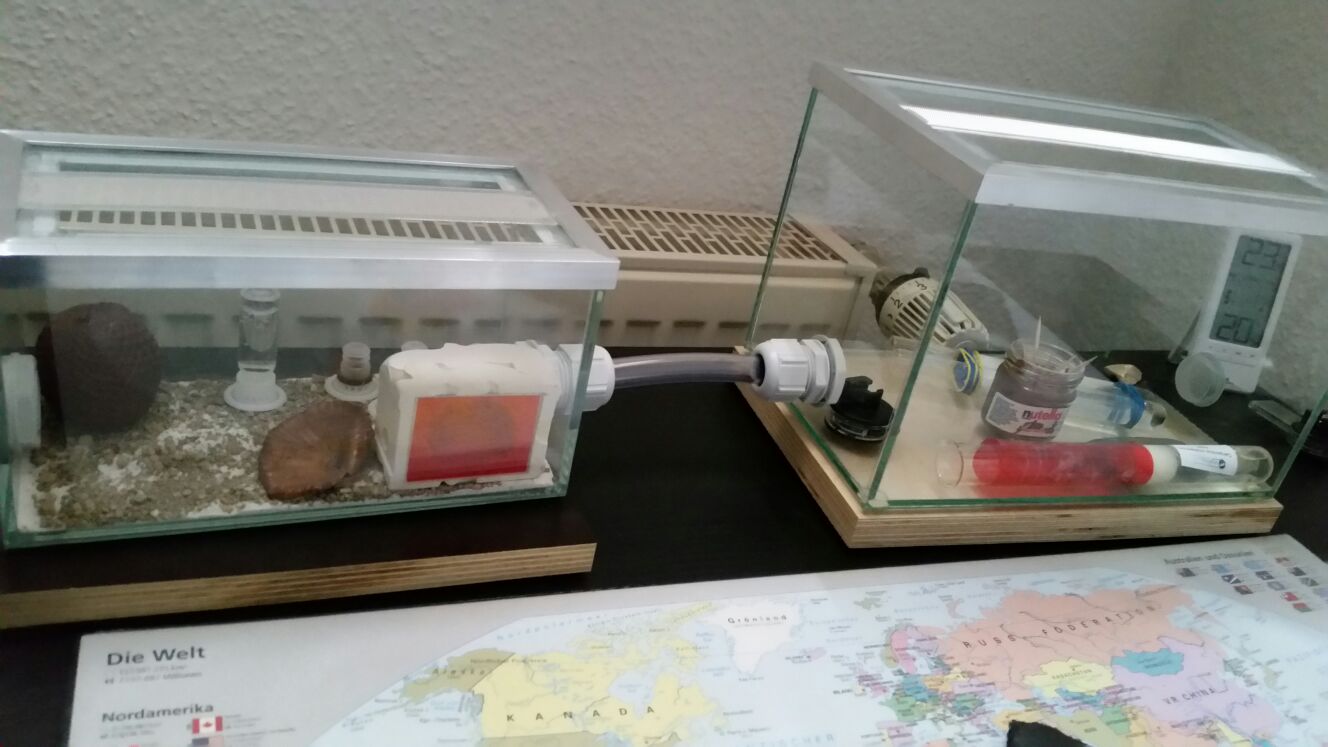 Bauchschmerzen bereitete. Bevor ich Sie mitsamt RG in ihre Arena setzte, gönnte ich ihnen erstmal ein paar Tage im abgedunkelten RG zum "ankommen".