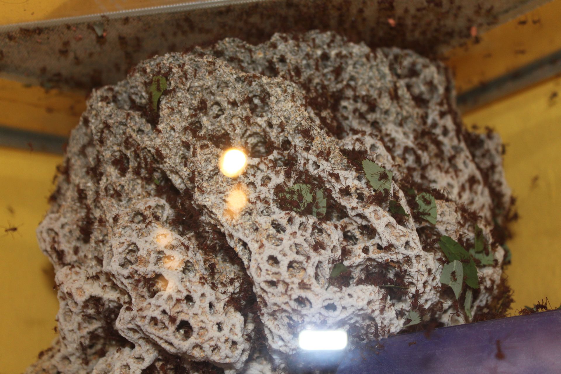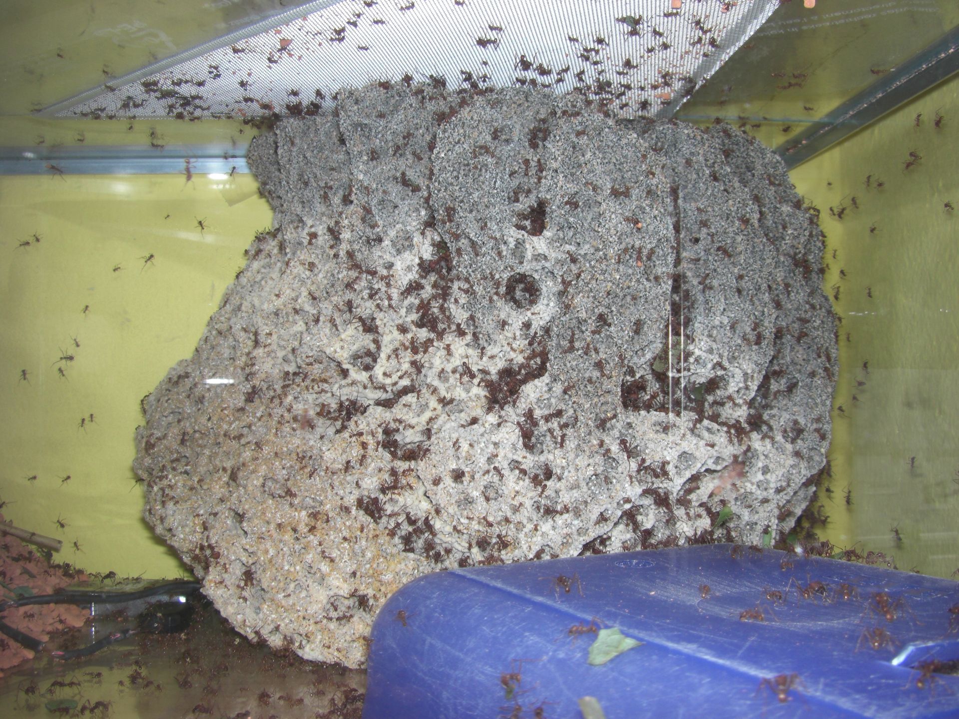 ich kann es schwer einschätzen,wie groß das volk ist,ich schätz mal so 1000-1300 also wie ich schon gesagt habehab ich neues extra becken,ein becken,wo der pilz drin ist,den abfall und den futterbehälter,würde gern fotos posten,aber iwie sind meine fotos zu groß und ich bin technisch nicht son genie,und weiß nicht,wie ich sie kleiner machen kann