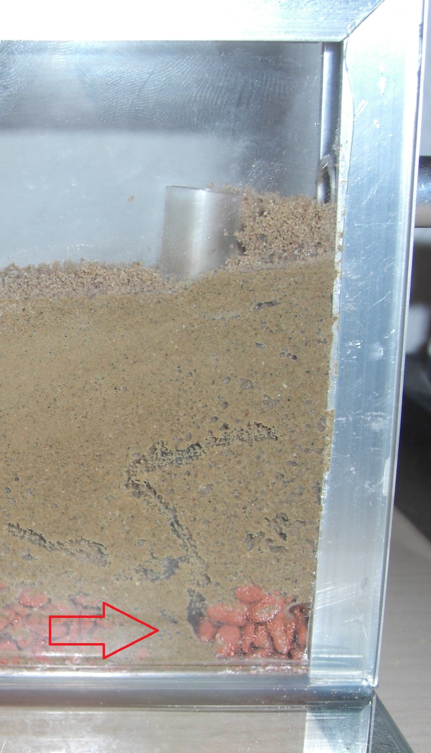 meine neuen Lasius niger haben ihr Reagenzglas verlassen und haben mein Drainagerohr von unten erobert.