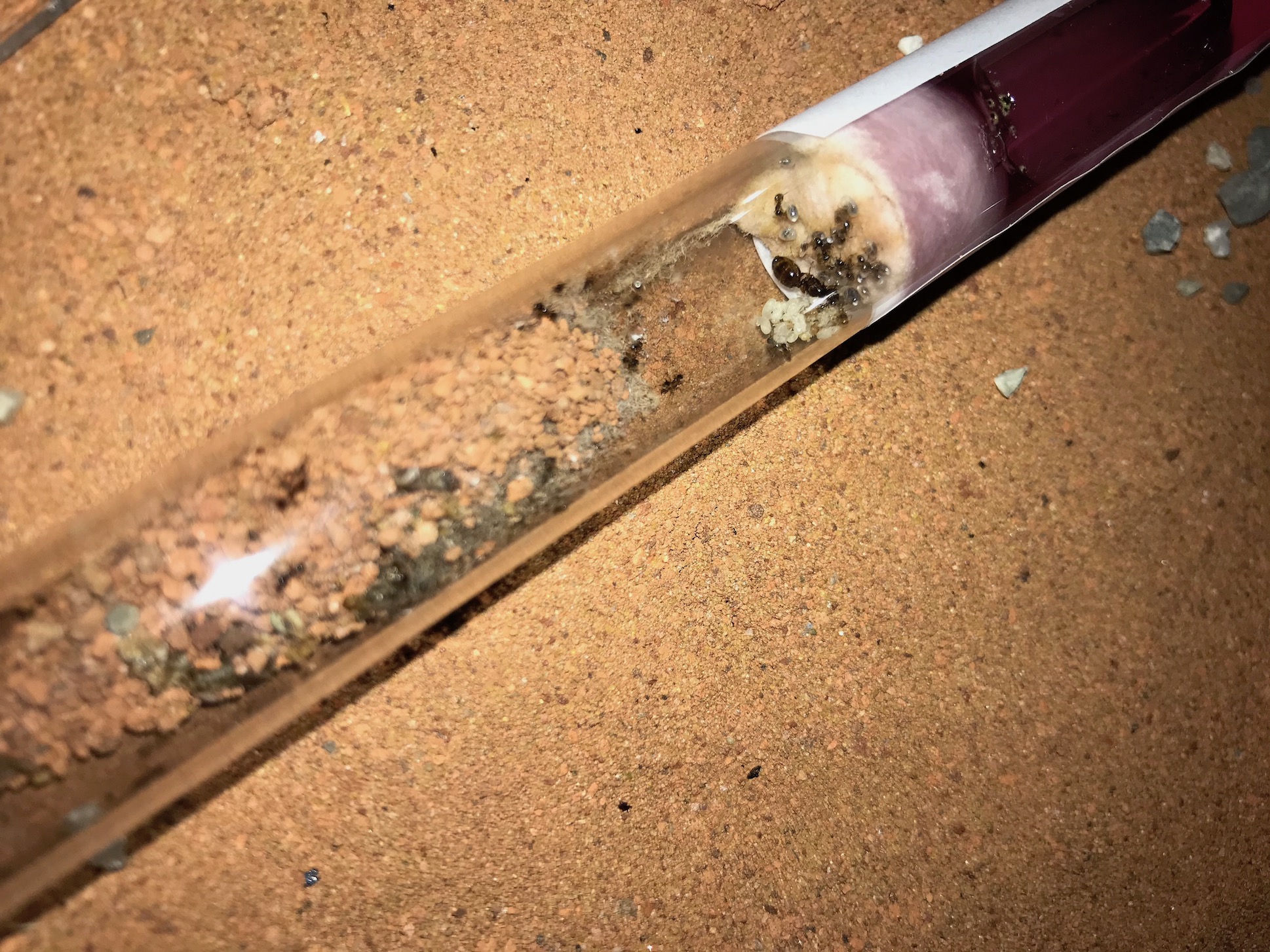 Allerdings habe ich gestern Nachmittag erschreckend feststellen müssen, dass bei meiner Pheidole pallidula Kolonie, dass Wasser im Reagenzglas Lila geworden ist.