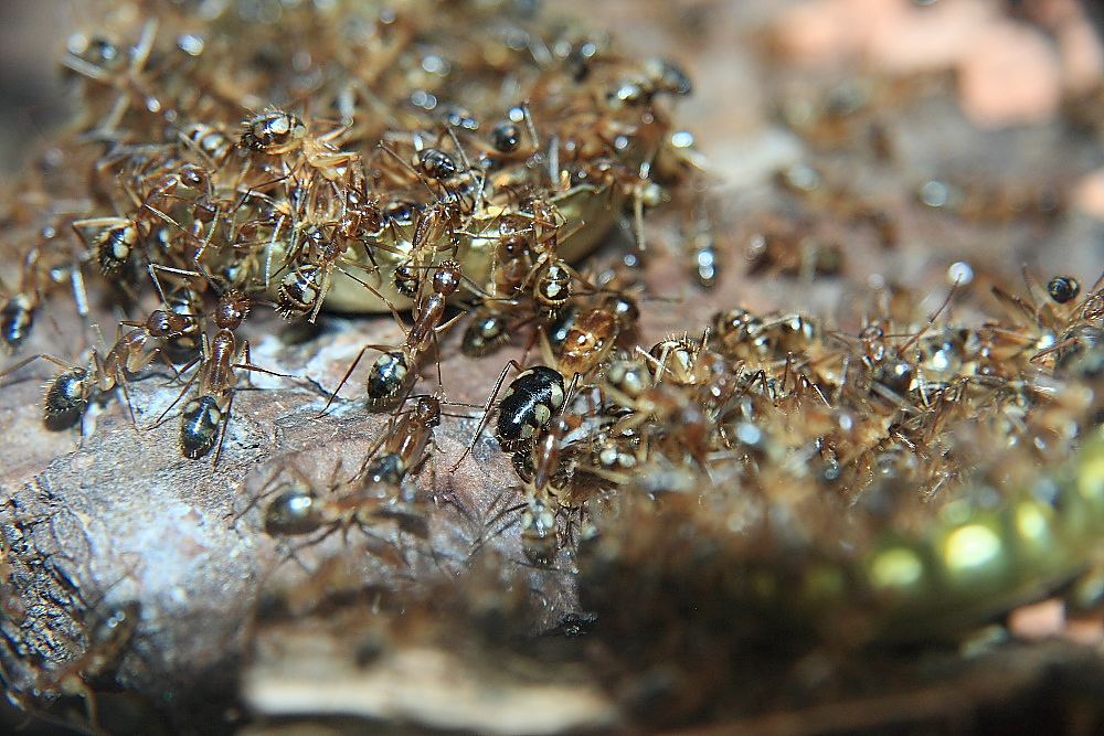 Ameisen die sich darum rangeln an Futter zu kommen.