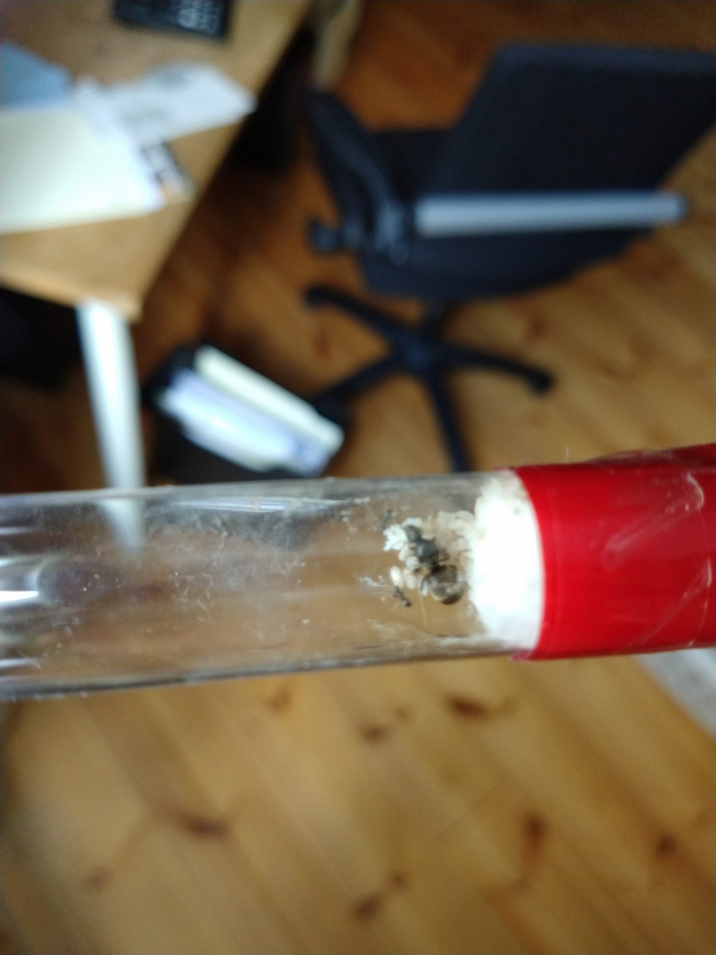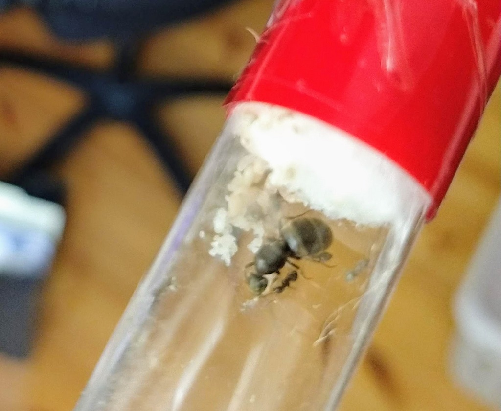 ich hab vor ~2Monaten eine Königin auf dem Gehweg gefunden, sie ins Reagenzglas gepackt und inzwischen sind ein paar Arbeiter geschlüpft.