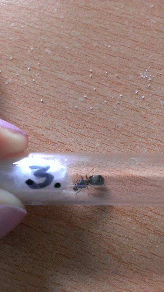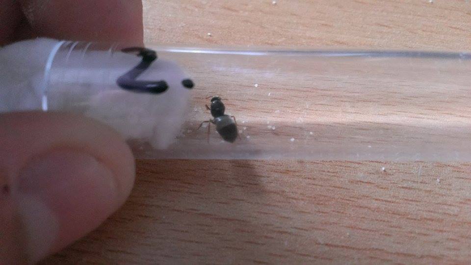 Ich habe sie auf einer Wiese gefunden, die Arbeiterinnen in der Nähre sahen aus wie eine Mischung aus Lasius niger und Lasius flavus, waren als rot und schwarz und auch sehr aggressiv. Die Königin wirkt auch schmaler als die anderen, ist aber auch 1cm lang.